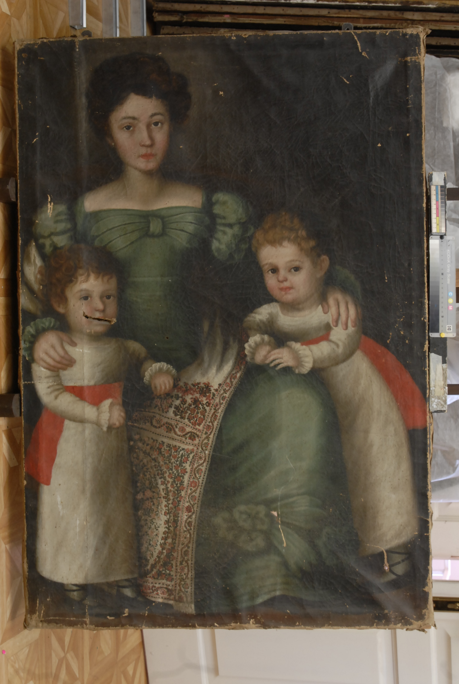 Інвентар 1948р.: 4 пробоїни. В окремих місцях випадіння фарбового шару.,