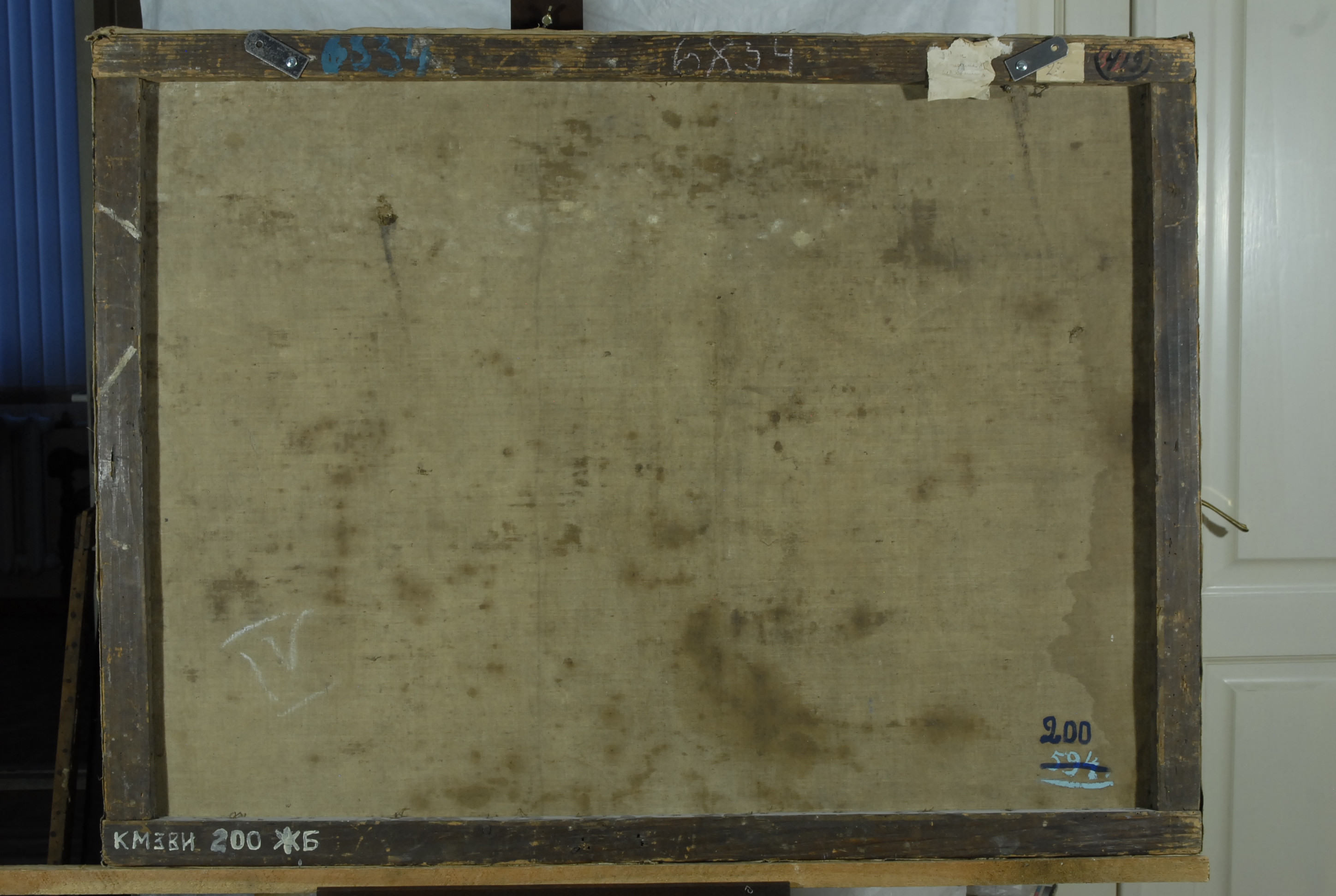 Інвентар 1948р.: дубльована; забруднення, сильно потьмяніла. По всій площині випадіння фарбового шару.,