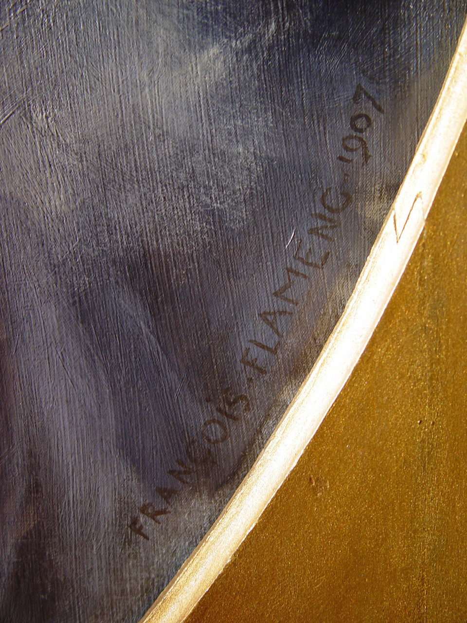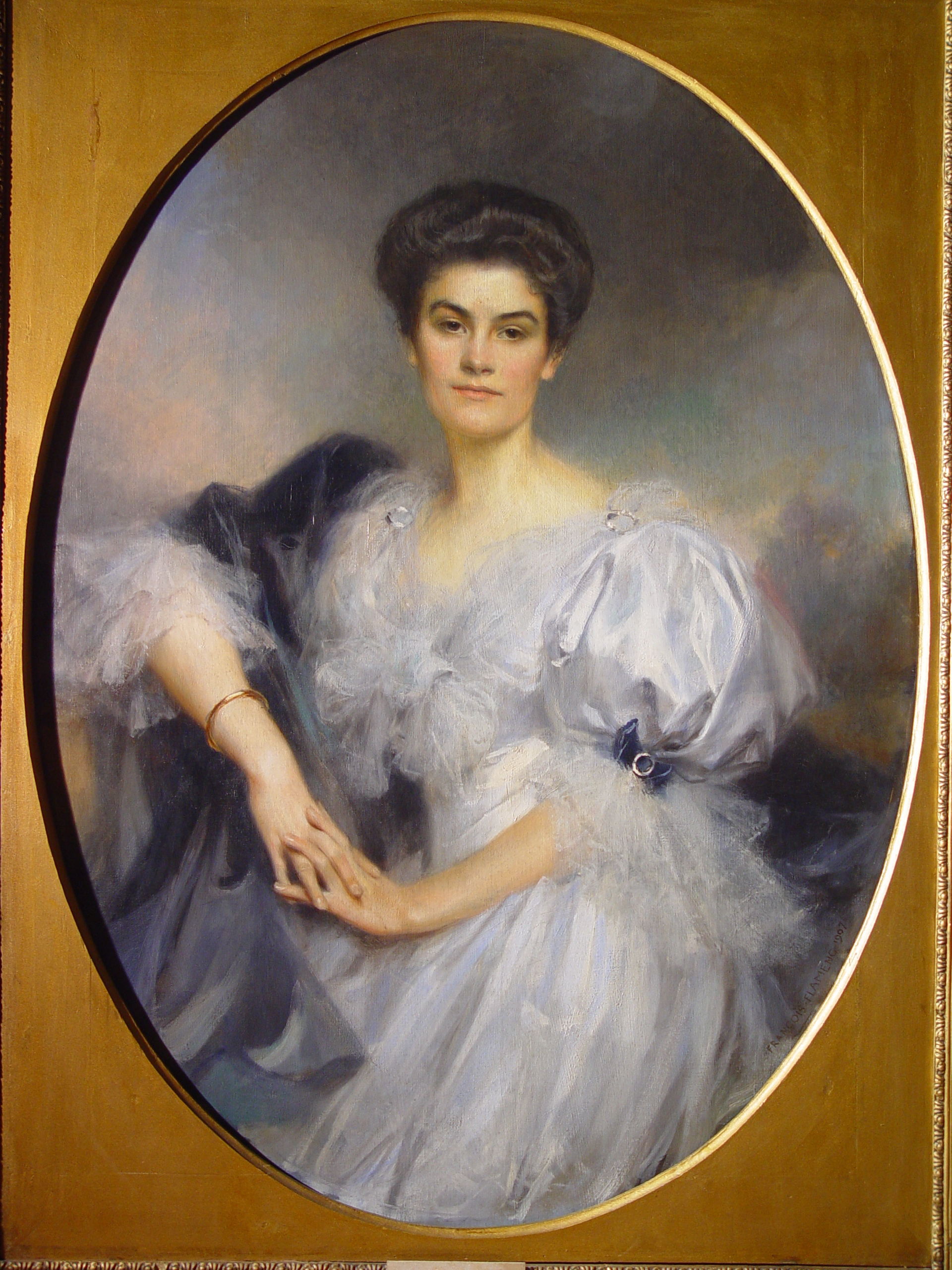 Задовільний. У рамі. Втрати фарбового шару: осипання бл. 1%. Реставраційні тонування змінили колір на 1% (локальні - обличчя). Підписи: FRANCOIS FLAMENG. 1907 (н.п.к.), автентичні. Покривний шар пізній. Потребує профілактичного огляду.