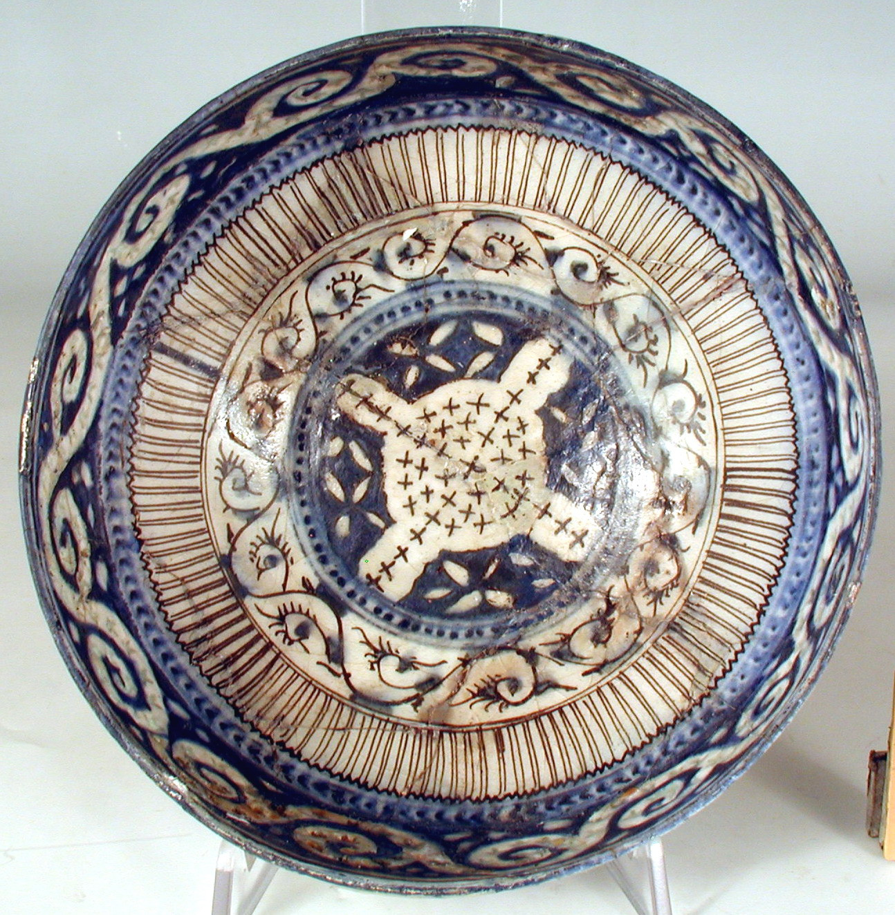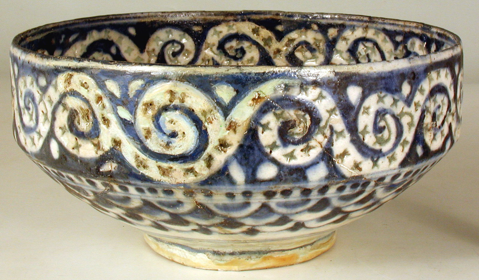Закладка “Атрибуція” - Наим. предмета, издания: Чаша грандері/Змiн. час створення: XVII-XVIII ст.Изм. техника: поливаИзм. техника: грандері, "рисове зерно"місце створення, школа: Іранмісце створення, школа: ГумрунНовый материал: кашин (фаянс)Новый материал: синій барвник (сполуки кобальту)Новый материал: чорний барвникНовый материал: поливаИзм. техника: випалИзм. техника: підглазурний розпис