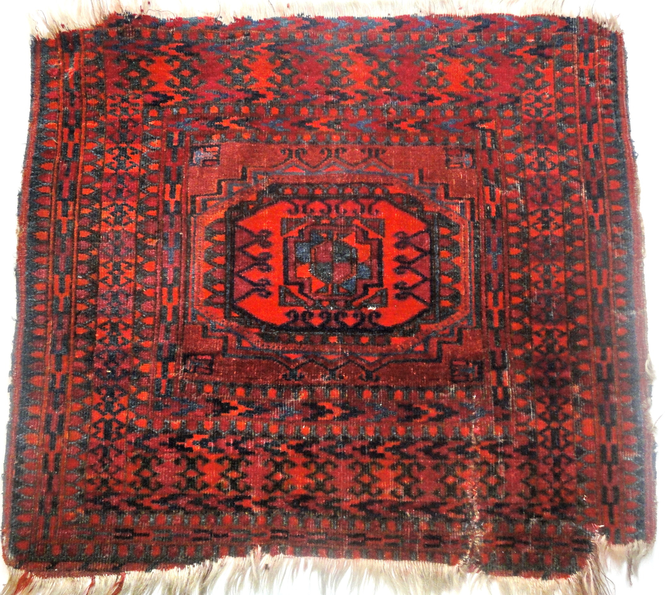Повсюдно втрати вовни до основи. Заштопаний розрив (14,5 см), з латкою зі зворотнього боку. Краї обтріпані, втрачений кут (3х5).,
