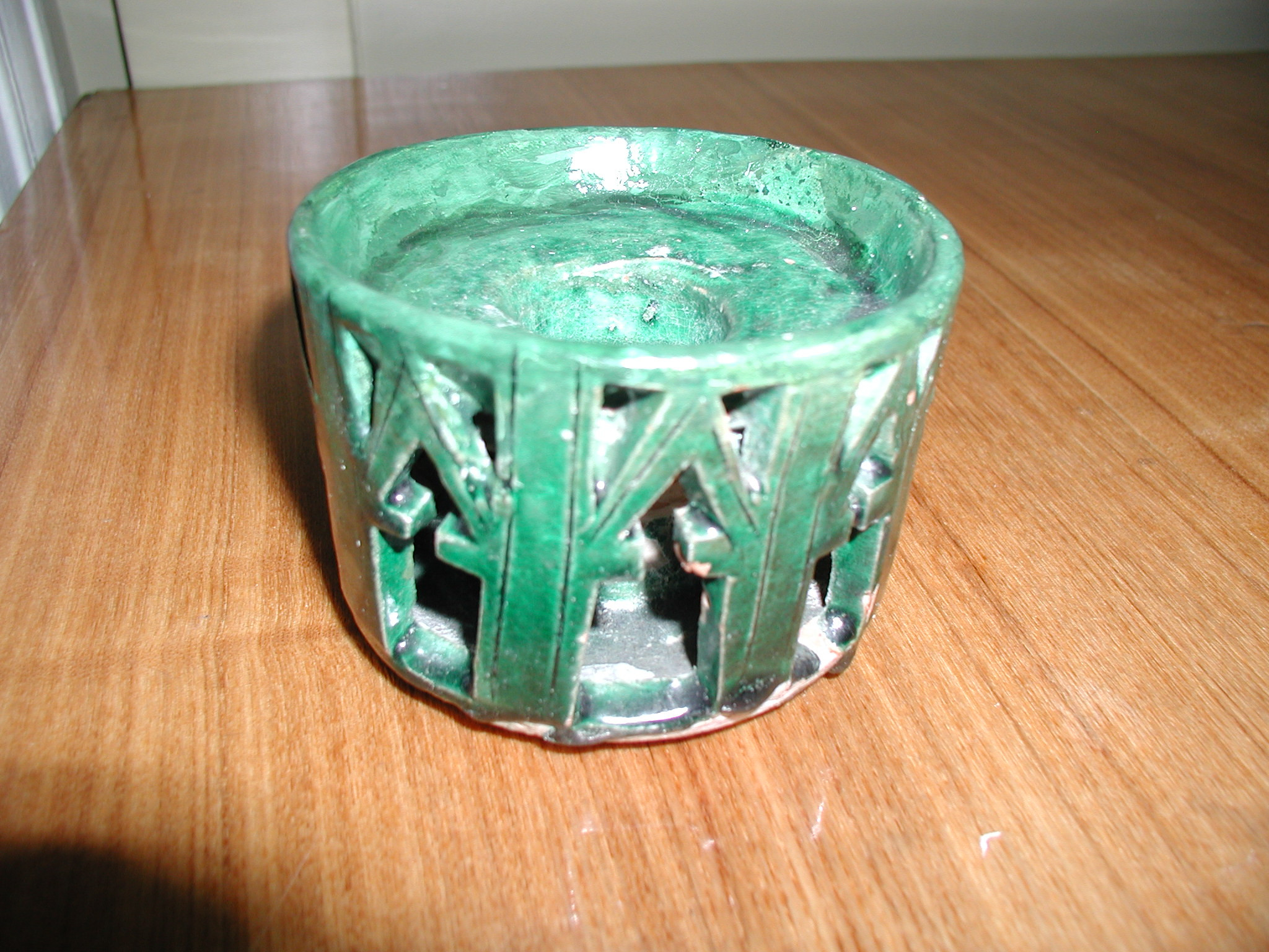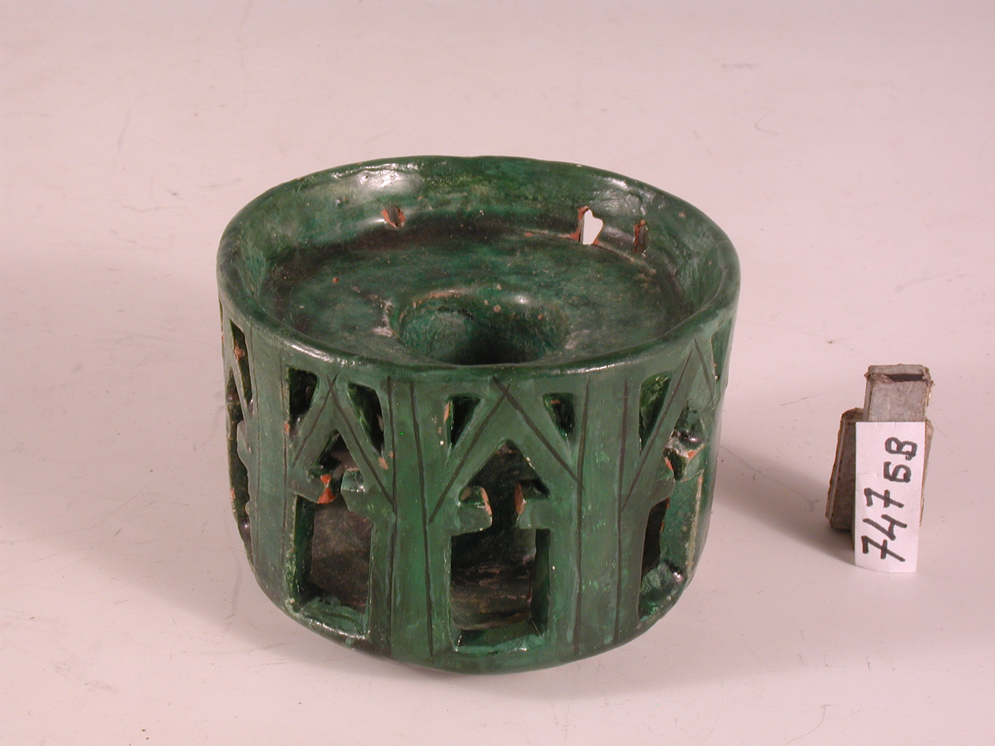 Закладка “Атрибуція” - Наим. предмета, издания: Каламар/Змiн.додаток до назва (лист, ...): Каламар циліндричний з ажурною зовнішньою стінкою/Змiн. час створення: X ст.Новый материал: керамікамісце створення, школа: СамаркандНовый материал: білий ангобПериод: доба СаманідівИзм. техника: перфораціяИзм. техника: ангобуванняИзм. техника: поливаНовый материал: полива зелена (сполуки міді)