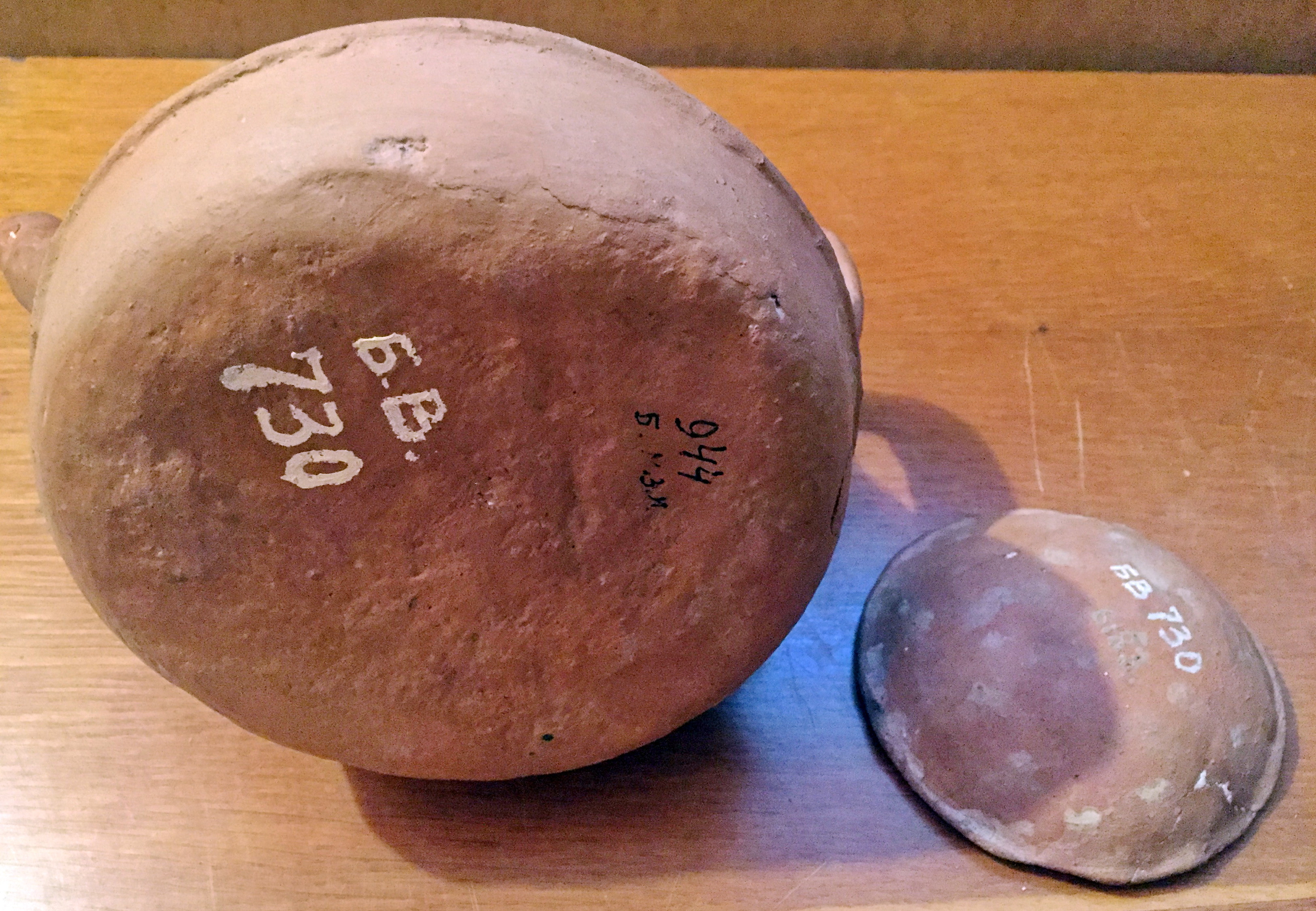 Угорі в трьох місцях край шийки надщерблений. Надщерблена та втрачена частина кришки.,