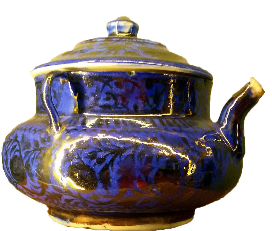 Закладка “Атрибуція” - Наим. предмета, издания: Чайникмісце створення, школа: Іранмісце створення, школа: ІсфаганНовый материал: кашин (фаянс)Новый материал: синій барвник (сполуки кобальту)Новый материал: люстрИзм. техника: випалИзм. техника: підглазурний розписИзм. техника: поливаИзм. техника: розпис люстром