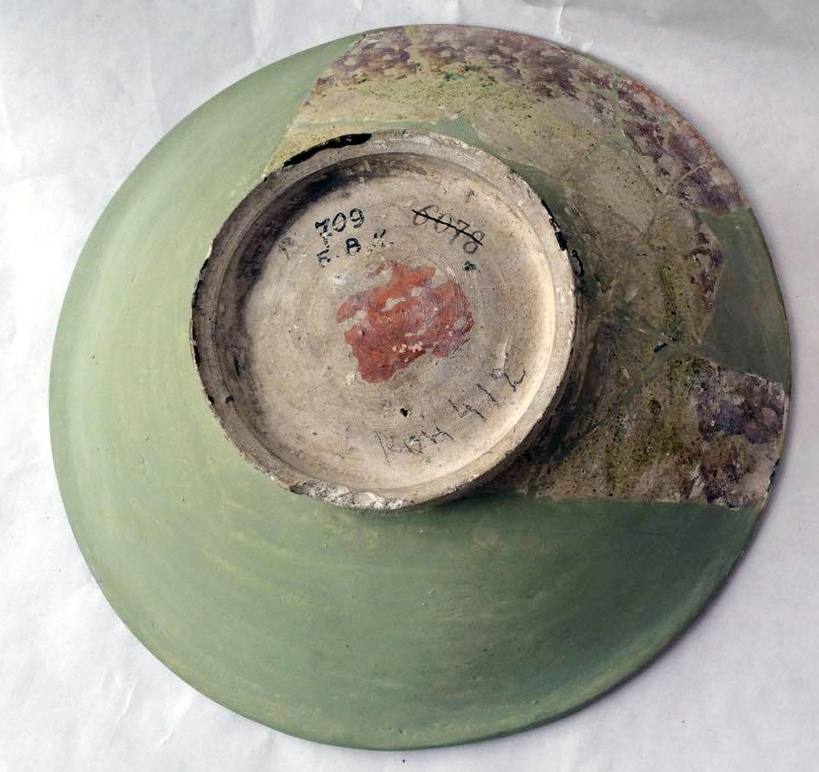 /Кількість: 1/Історія предмета, легенда: Куплений музеєм у гром. Денисенка в 1929 році. За словами колишнього власника, мисочку було знайдено 1911 року під час проведення земляних робіт для будівництва дому № 6а по вул. Вел.Житомирській, на глибині 3-4 аршина від поверхні землі, на території київського Дитинця (див. публікацію Жука 1930 р.)/Побутування/творiв такого типу: Консультація В. Залєсскої, 03.10.2006: Візантія, 10 ст. (не пізніше 11 ст.) Білоглиняна мисочка. Такі глини зустрічаються в різних районах візантійської імперії - наприклад, біля Константинополя, Нікеї, Трапезунду. Столичне виробництво (столичне у широкому розумінні - Константинополь або Нікея - північно- західний кут Малої Азії). Може зайняти гвідповідне гідне місце в експозиції музею. Аналогії - з розкопок Херсонесу та ін.