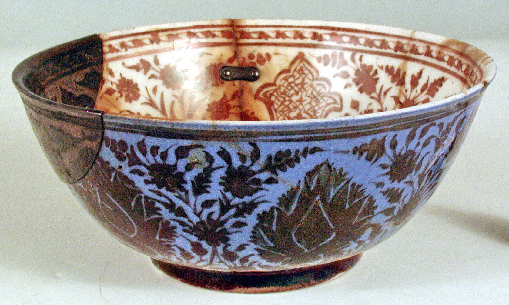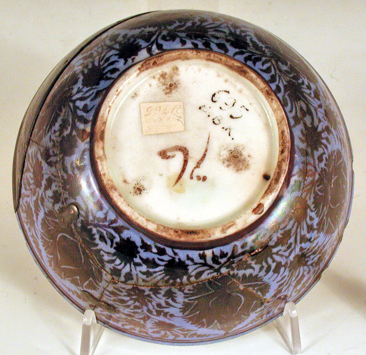 Закладка “Атрибуція” - Наим. предмета, издания: Чаша/Змiн. час створення: 17 ст.місце створення, школа: КерманНовый материал: фаянсНовый материал: мідний сплавПериод: доба СефевідівИзм. техника: синя поливаИзм. техника: біла поливаИзм. техника: розпис люстромИзм. техника: куванняИзм. техника: гравірування