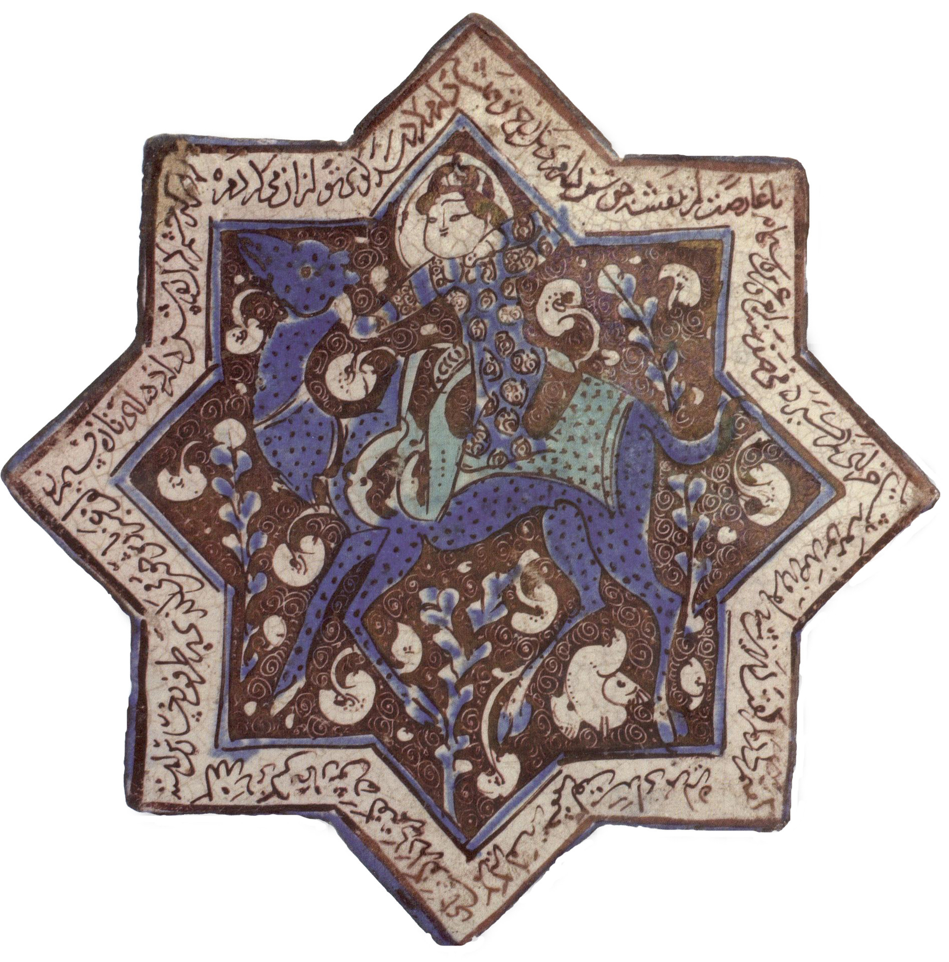 http://commons.wikimedia.org/wiki/File:Star_tile_with_seated_figure_from_Kashan,_Iran,_13th_century,_HAA_I.JPG