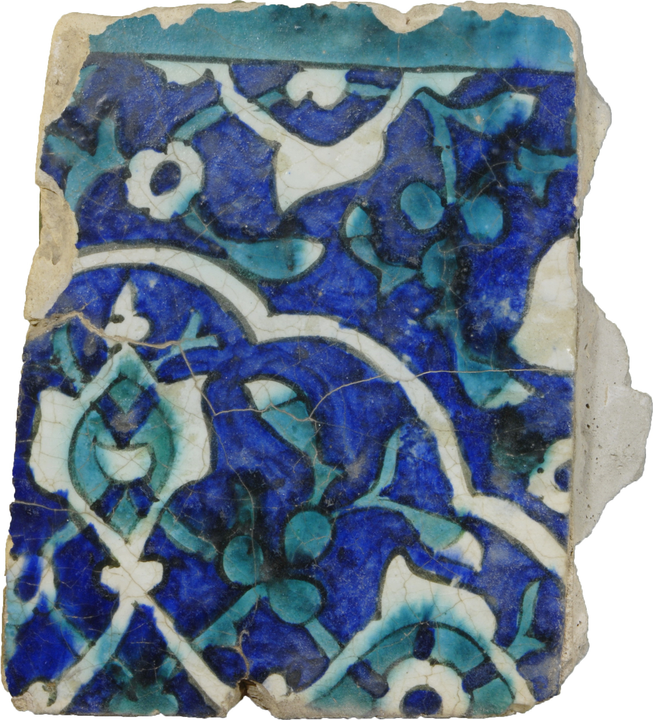 Закладка “Атрибуція” - Наим. предмета, издания: Фрагмент мозаїчного облицювання/Змiн.додаток до назва (лист, ...): Фрагмент мозаїчного облицювання Медресе Мірі-Араб в Бухарі (1530-1536)місце створення, школа: БухараНовый материал: керамікаНовый материал: поливаПериод: доба ШейбанідівИзм. техника: поливаИзм. техника: різьбленняИзм. техника: мозаїка