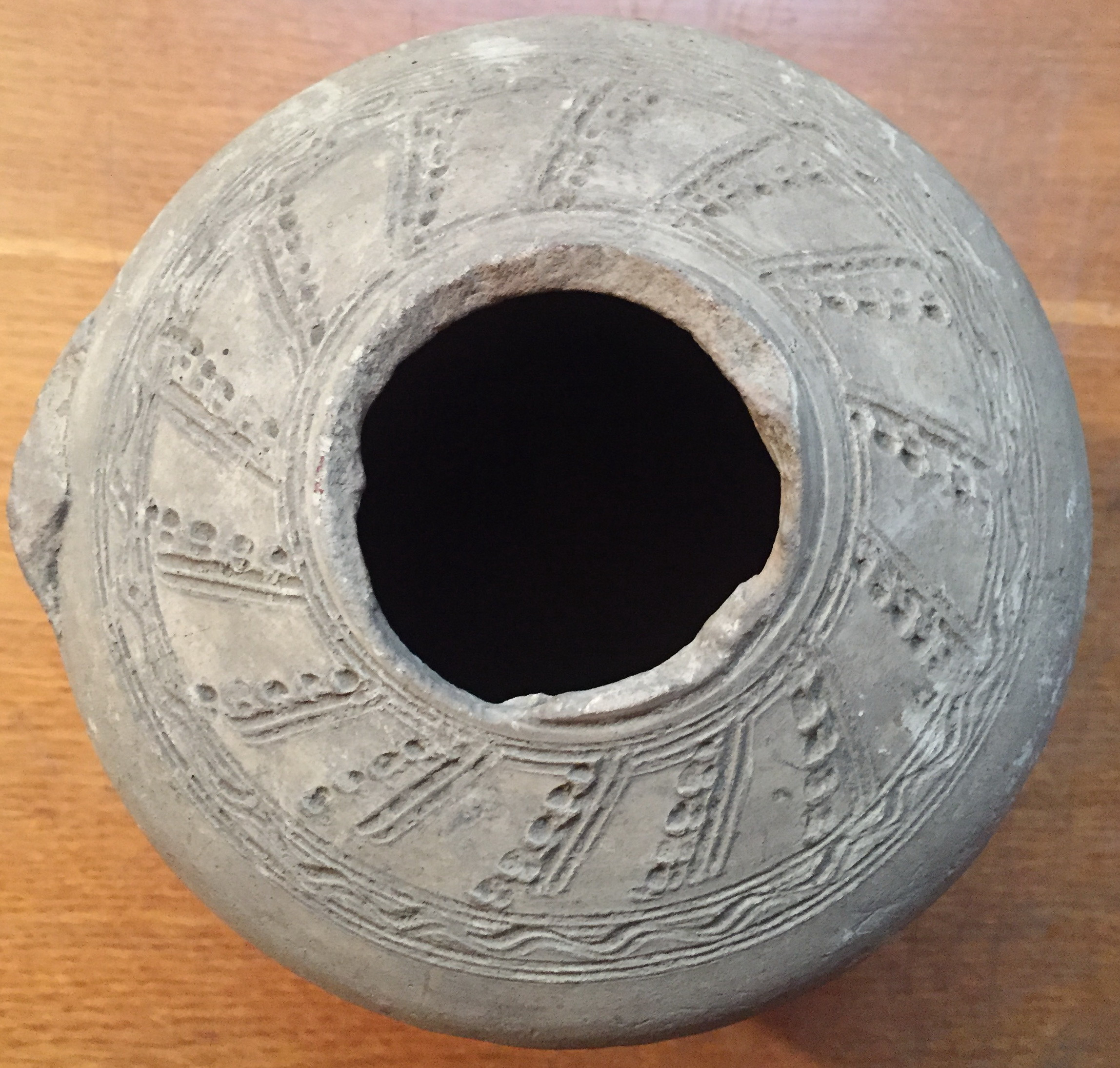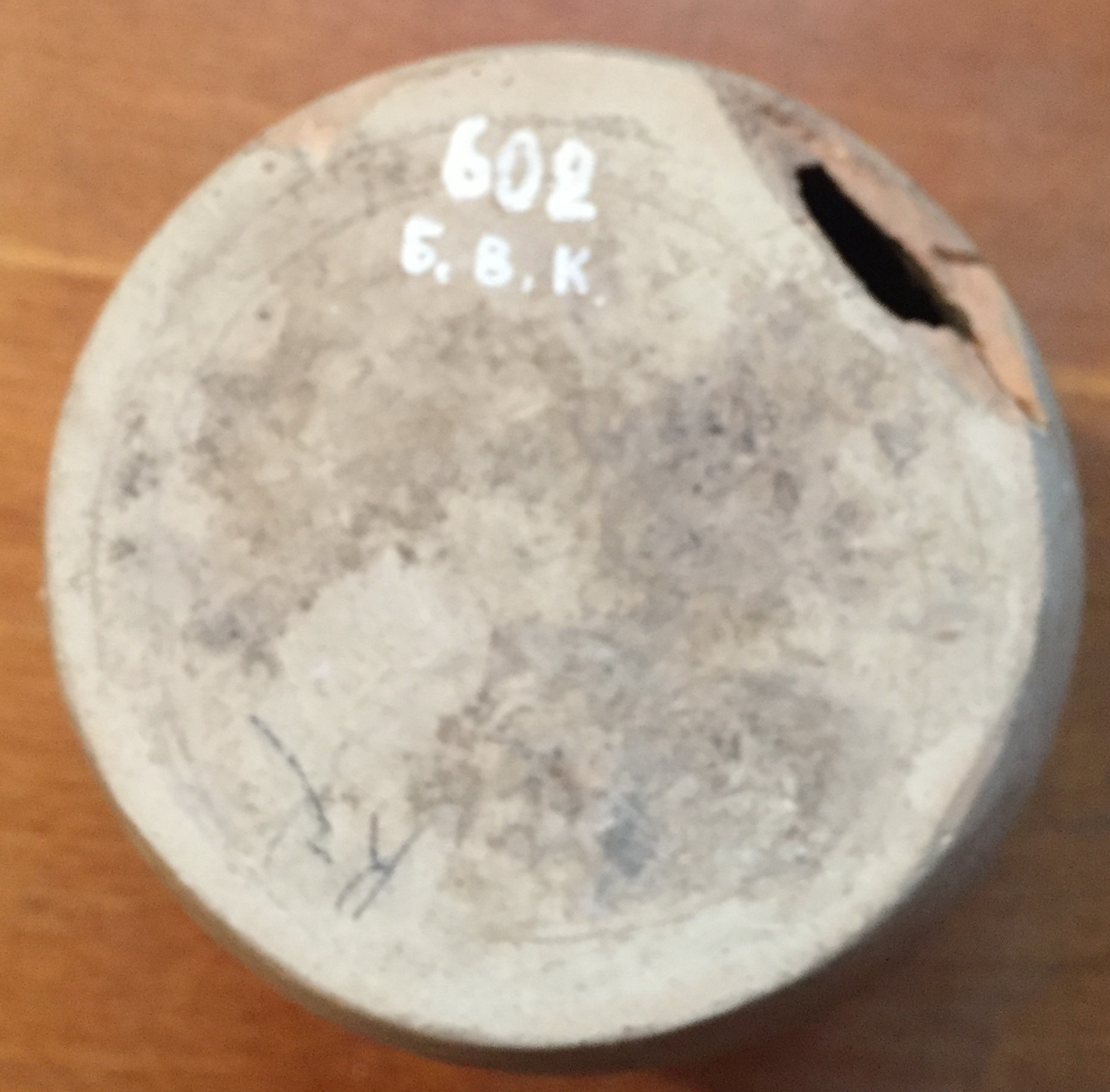 Шийка та ручка відбиті. На краю корпуса та дна пробоїни.,