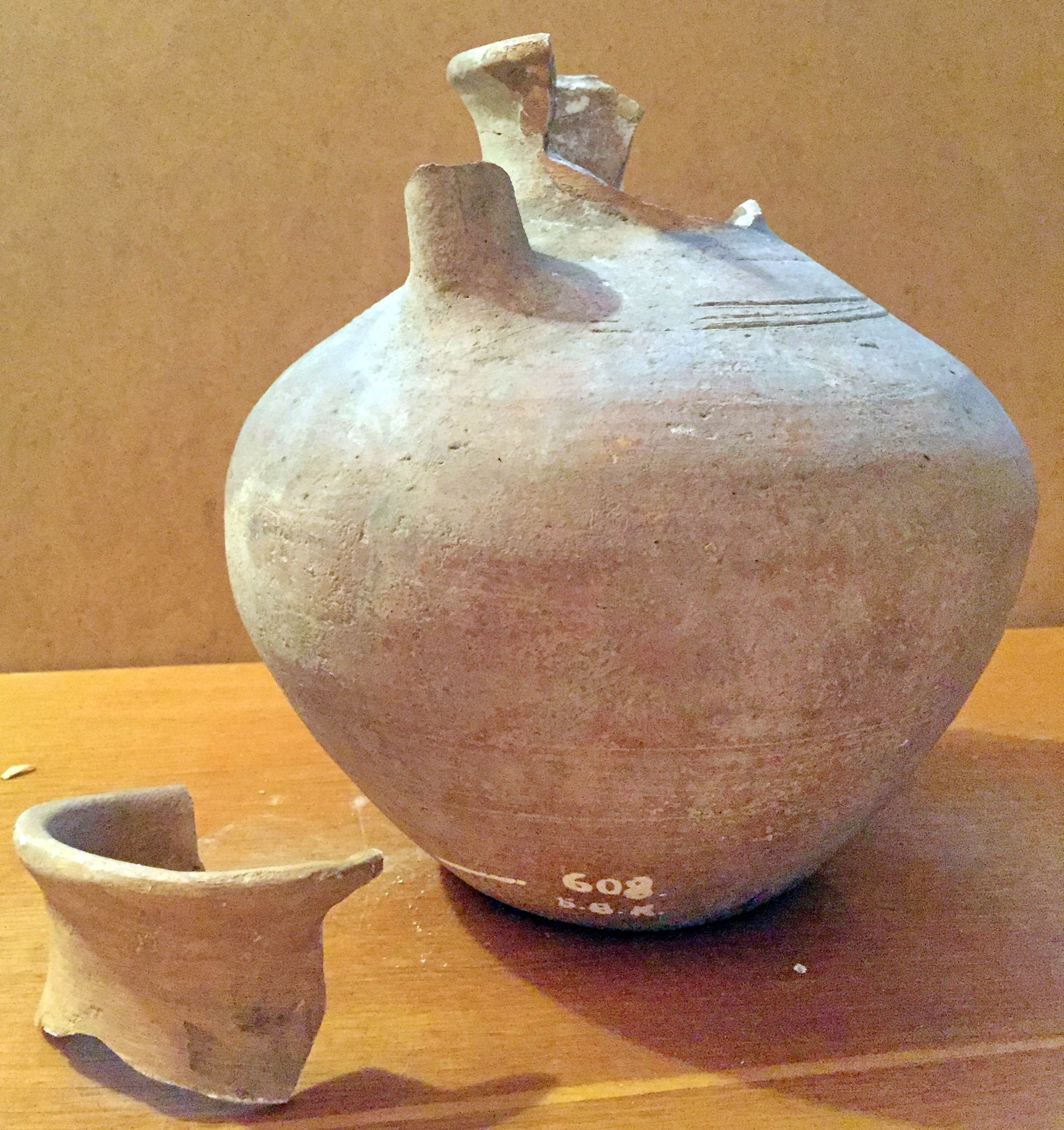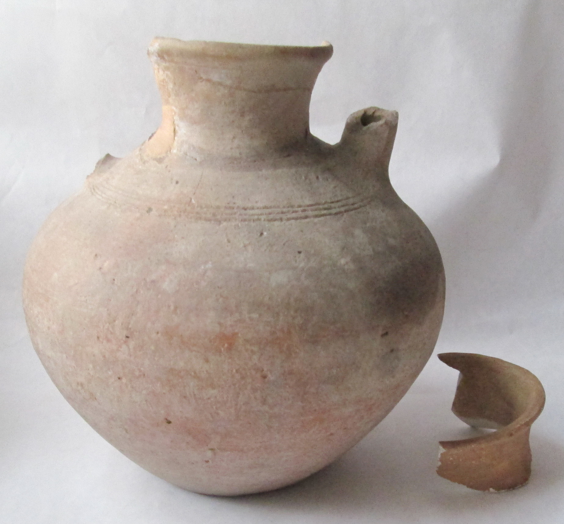 Ручка відбита повністю, носик частково. Частина шийки дороблена з гіпсу.,