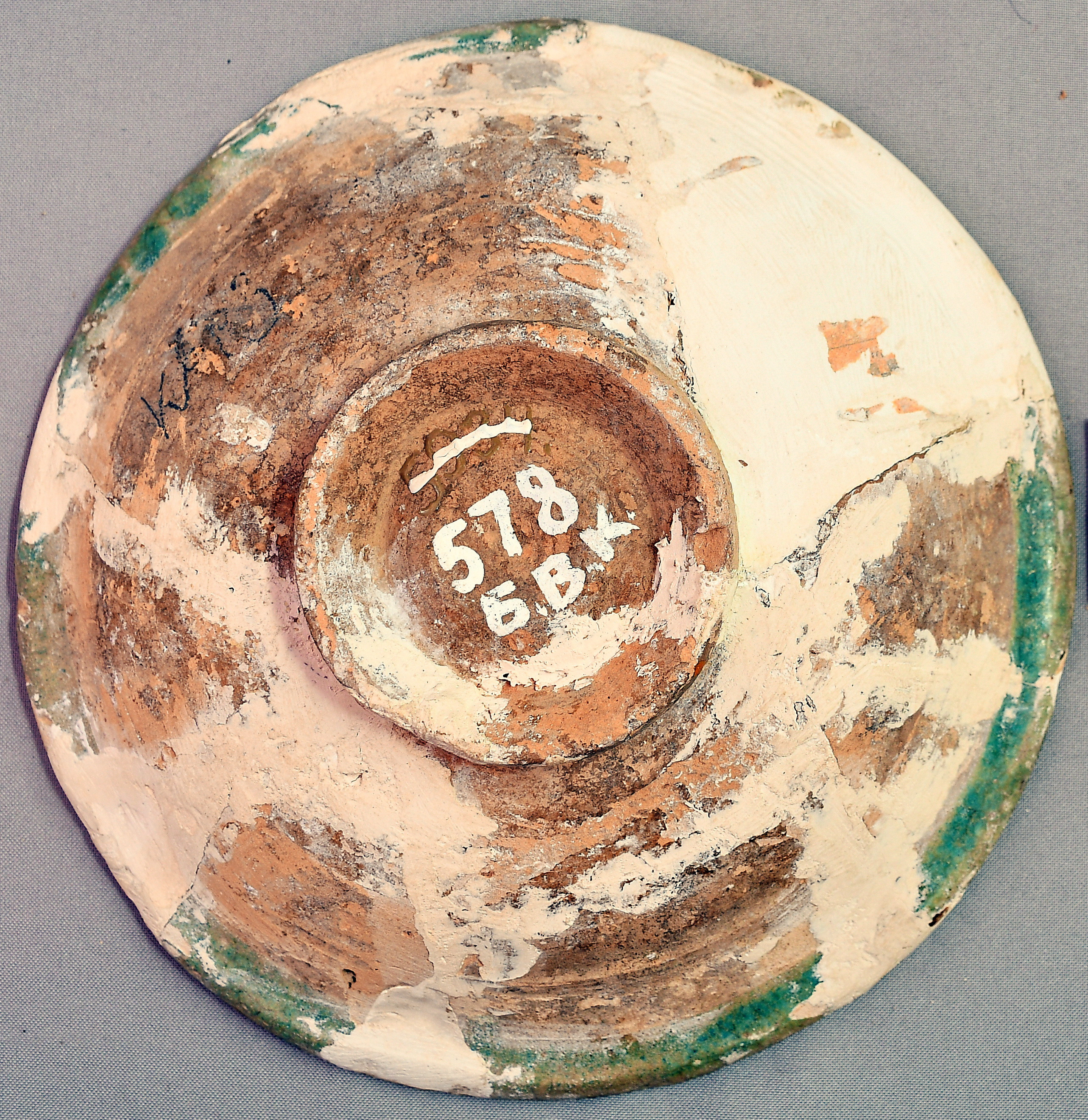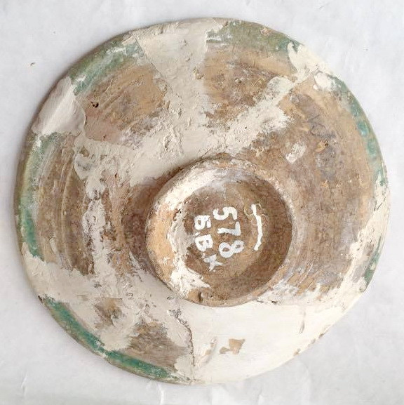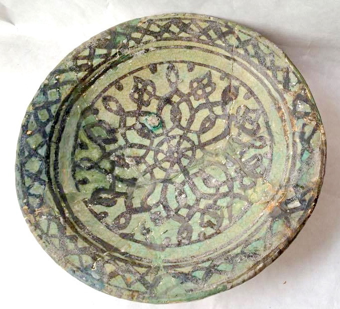 Розбита на багато шматків. Склеєна. Реставрована у #1951 році.,