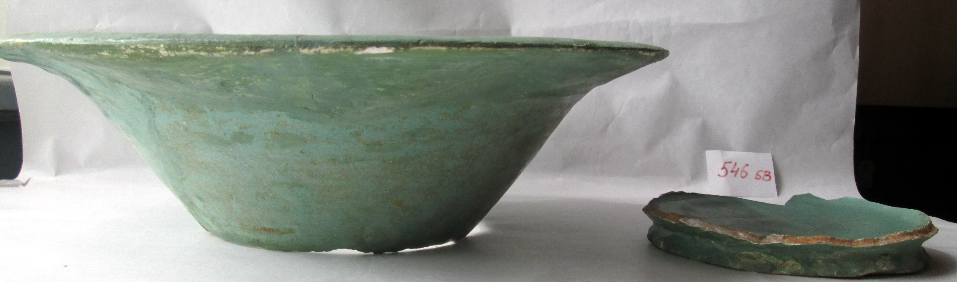Склеєна з багатьох шматків. Догіпсована. Реставрована, 1951 р.,