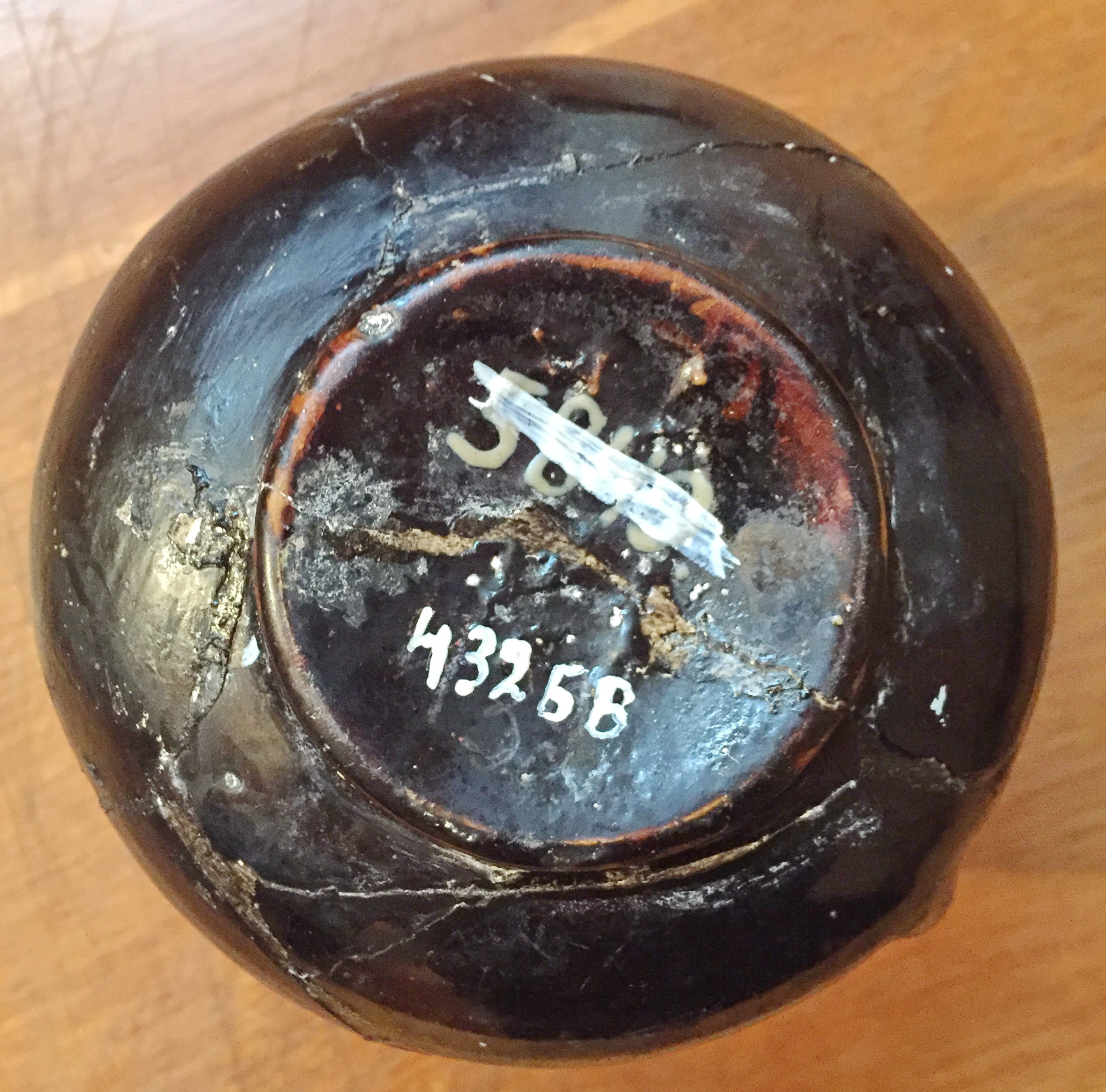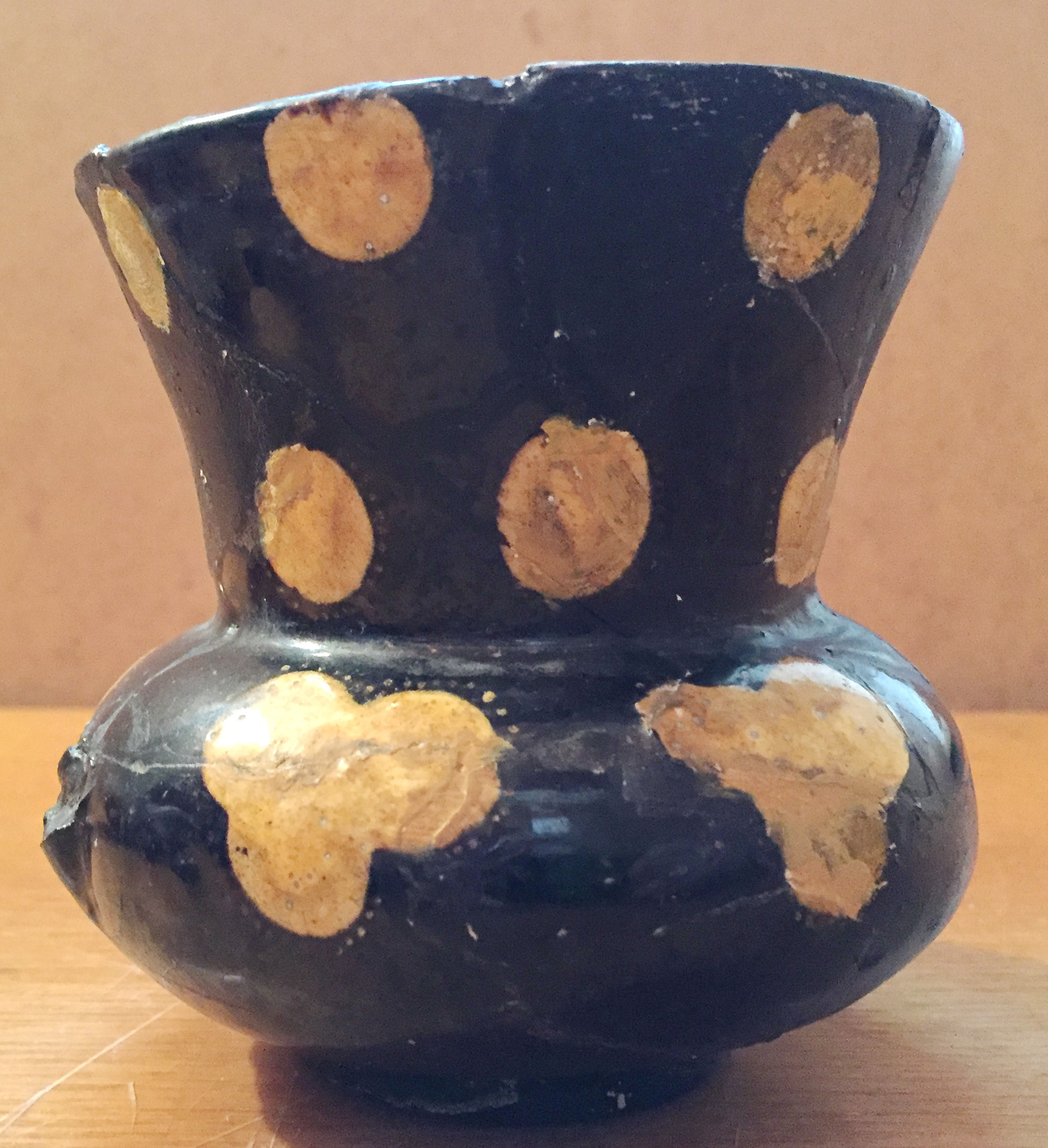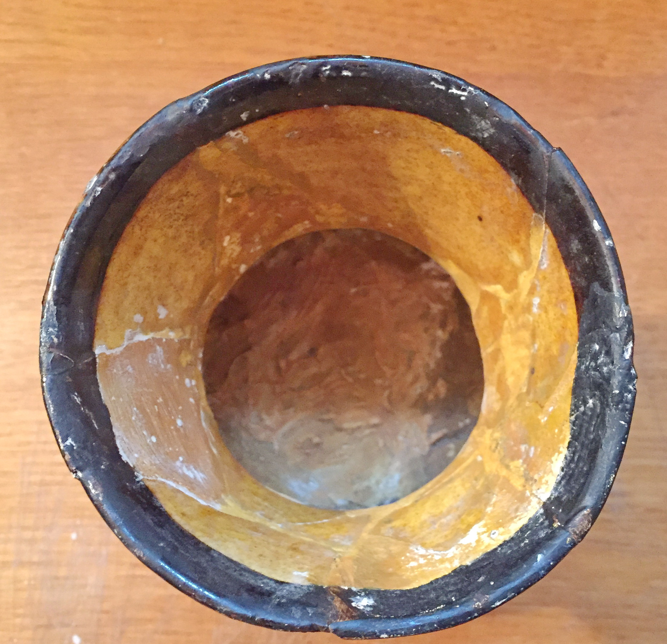 Склеєна з шматків. Догіпсована. Немає ручки.,