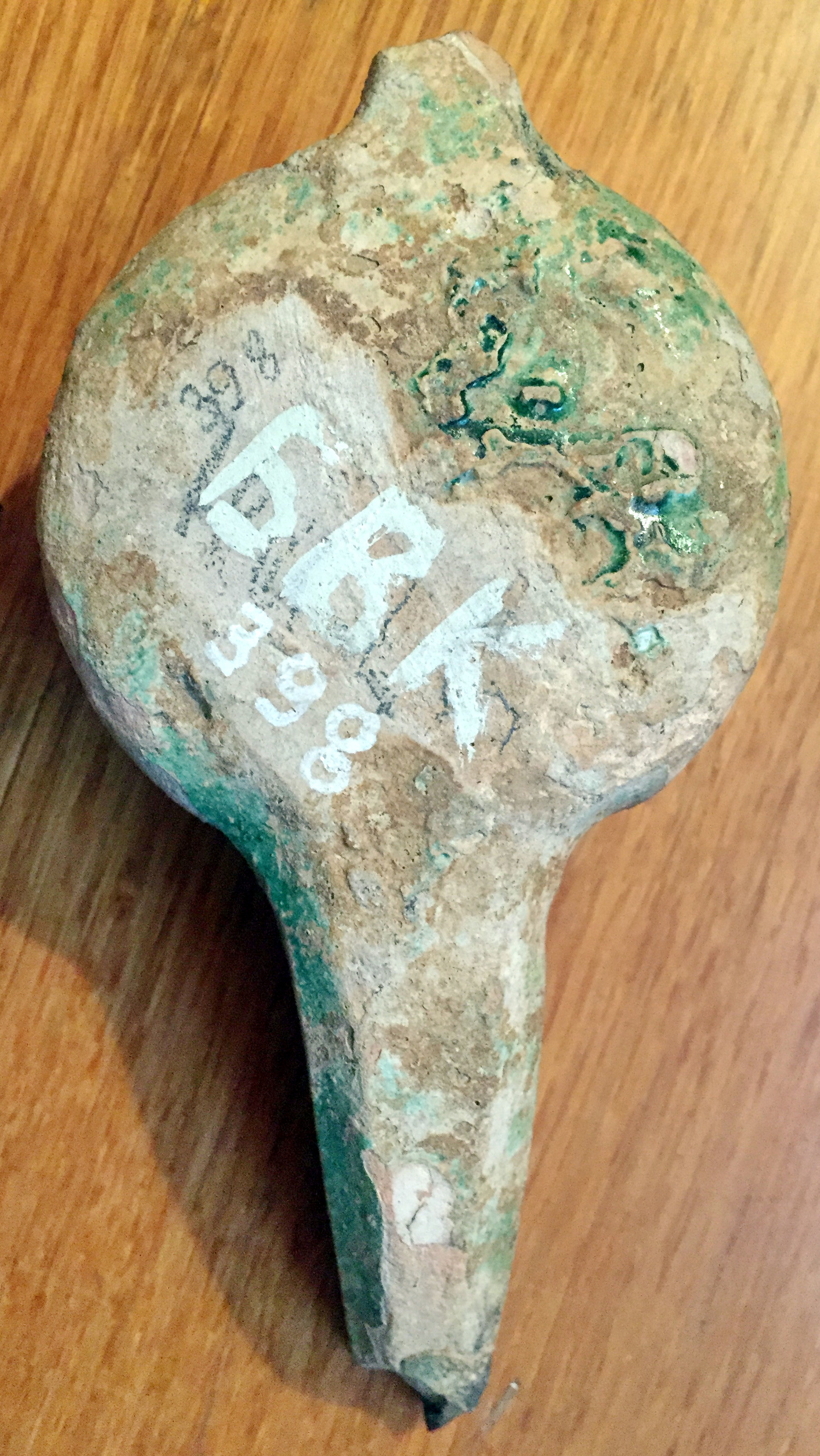 Відбита ручка. На кінці носика вибоїна. К деяких місцях полива відбита.,