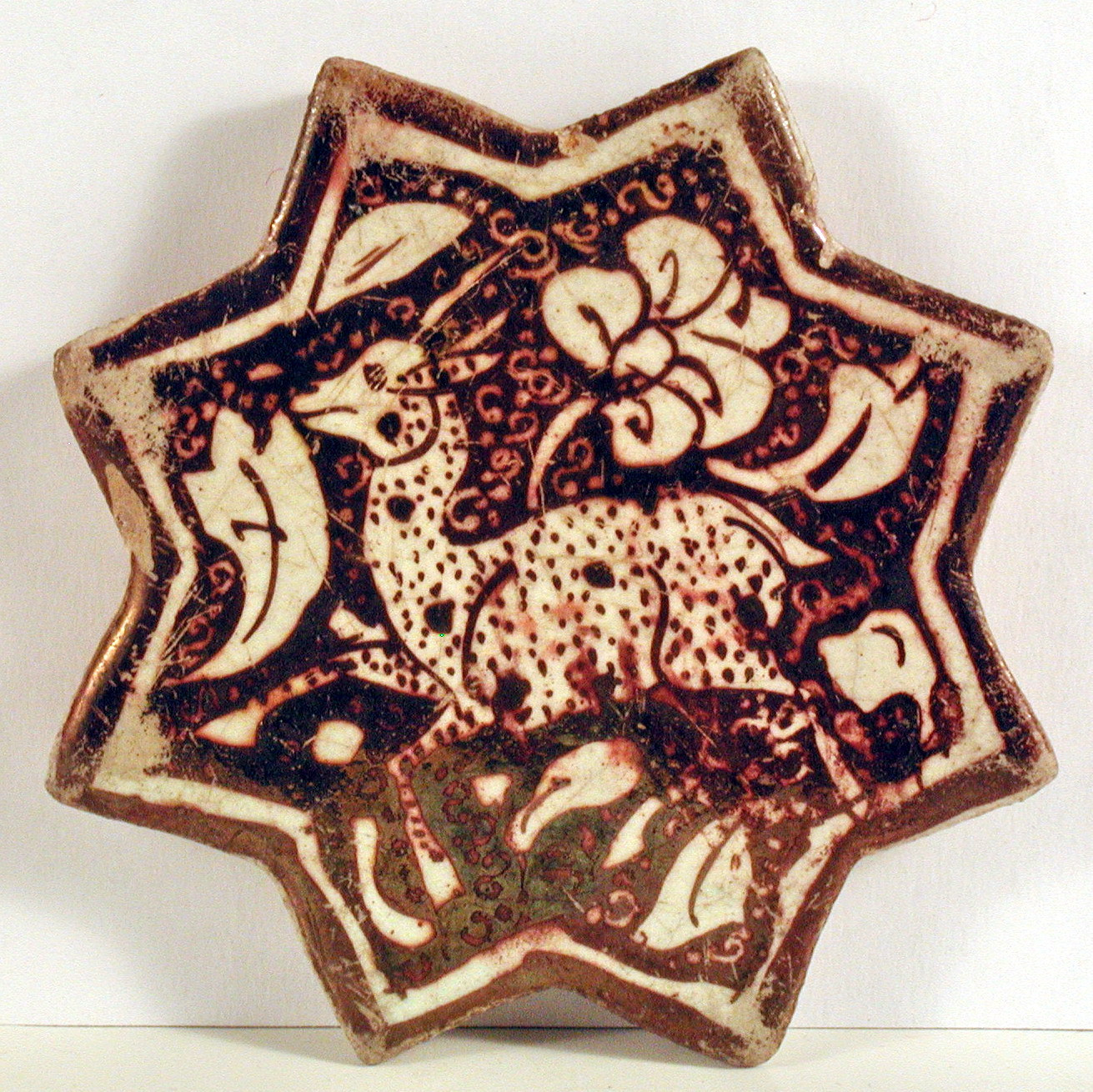 Кахель люстрований у формі восьмикутної зірки. Іран, Кашан, остання чверть 13 ст. Фаянс, полива, надполив’яний розпис люстром. 10.5 х 10,5. № 705 БВ НММХ.