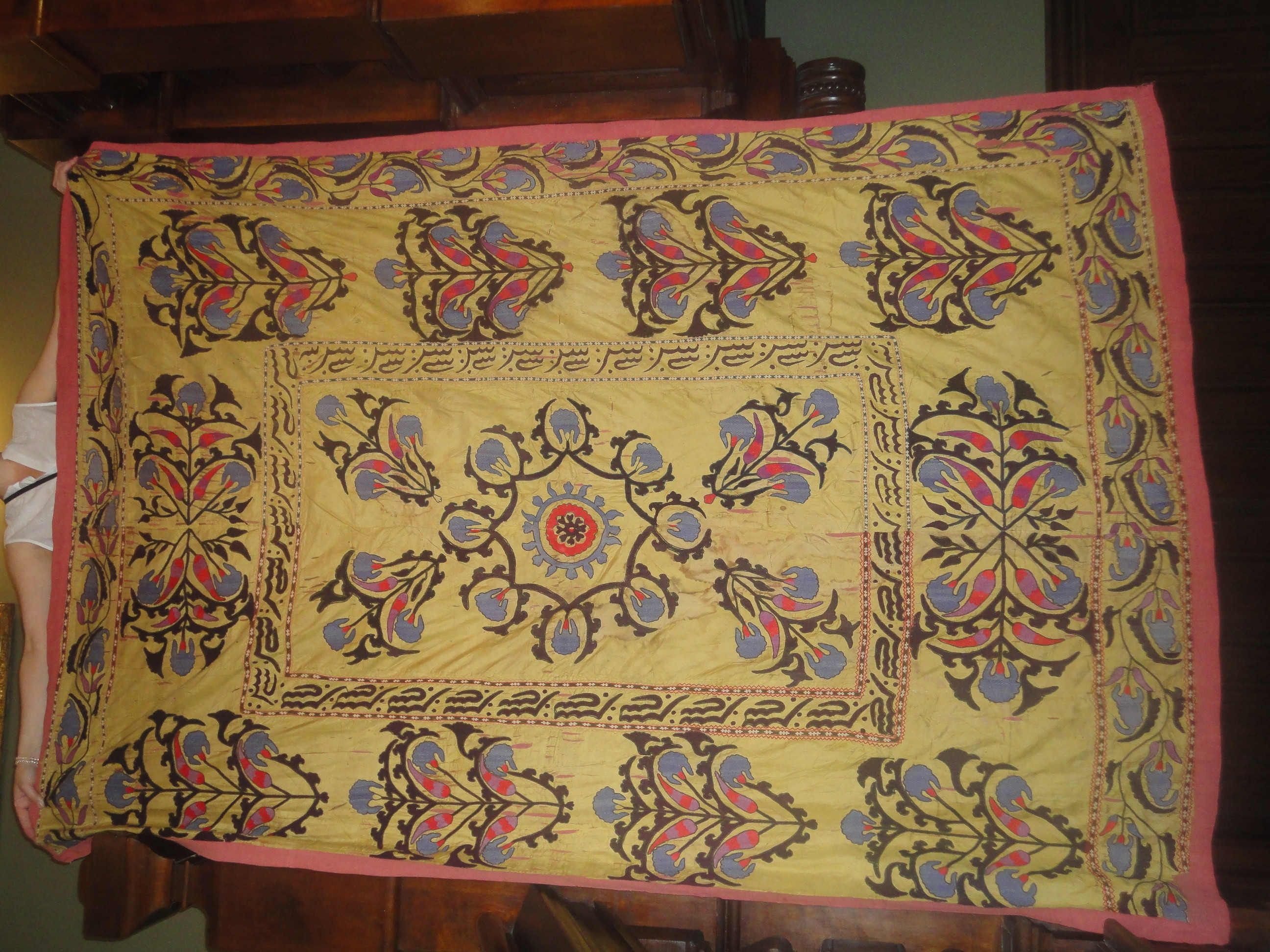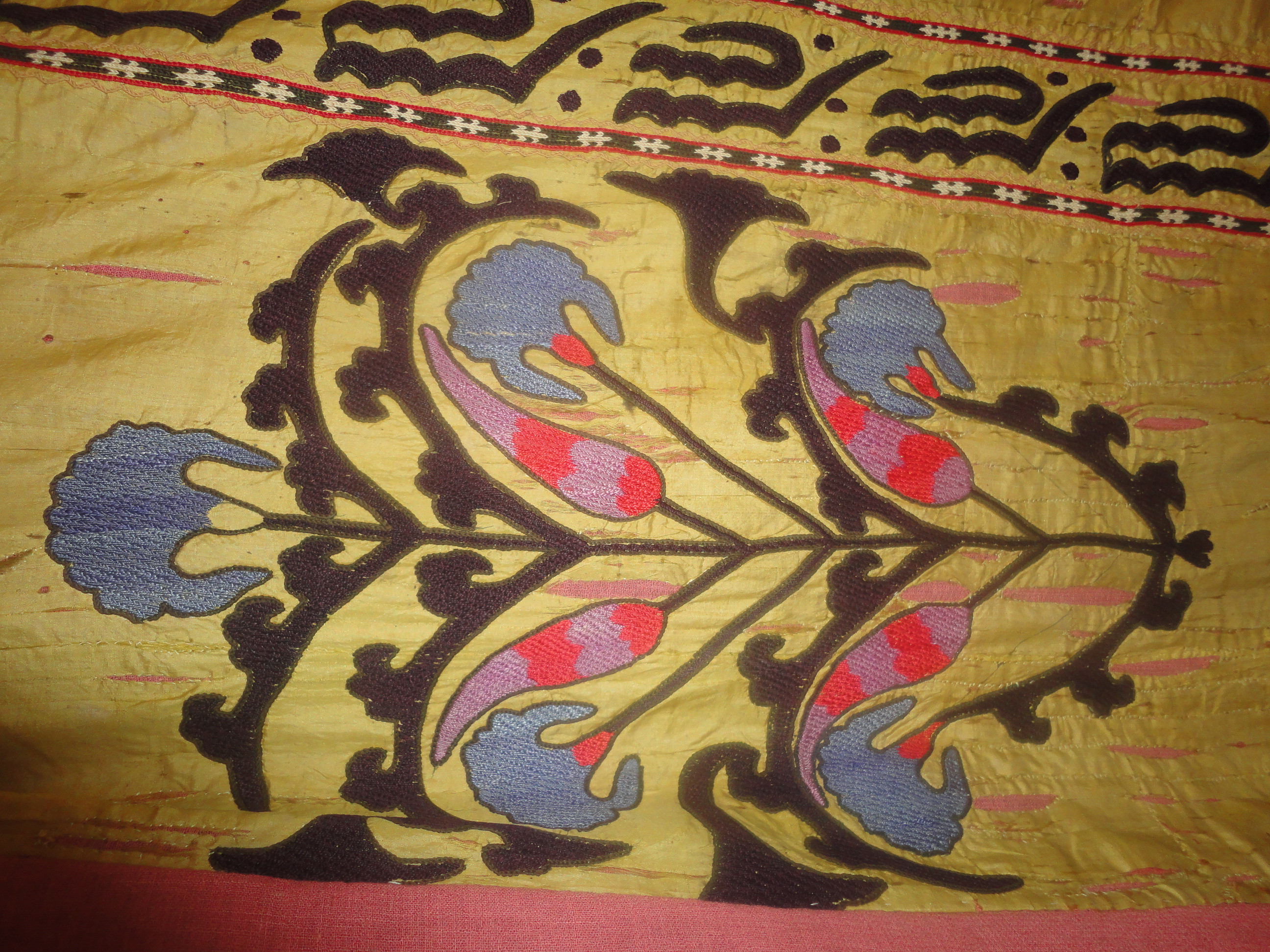 Консультація колекціонера та мистецтвознавця Мамута Чурлу (Крим) 06.11.2011: Самарканд, 19 ст., техніки босма та йурма./Побутування/творiв такого типу: О.А. Сухарева, стор. 27: Для Самарканда обычны вышивки на шелковых тканях..... желтом (зард)... шелках.