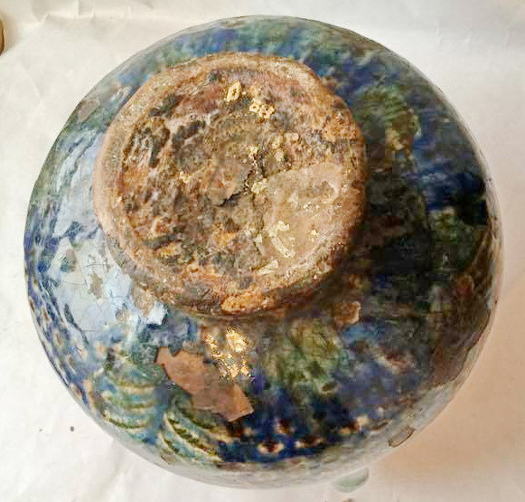 Великий шматок шийки відбитий. На корпусі осипи поливи.,