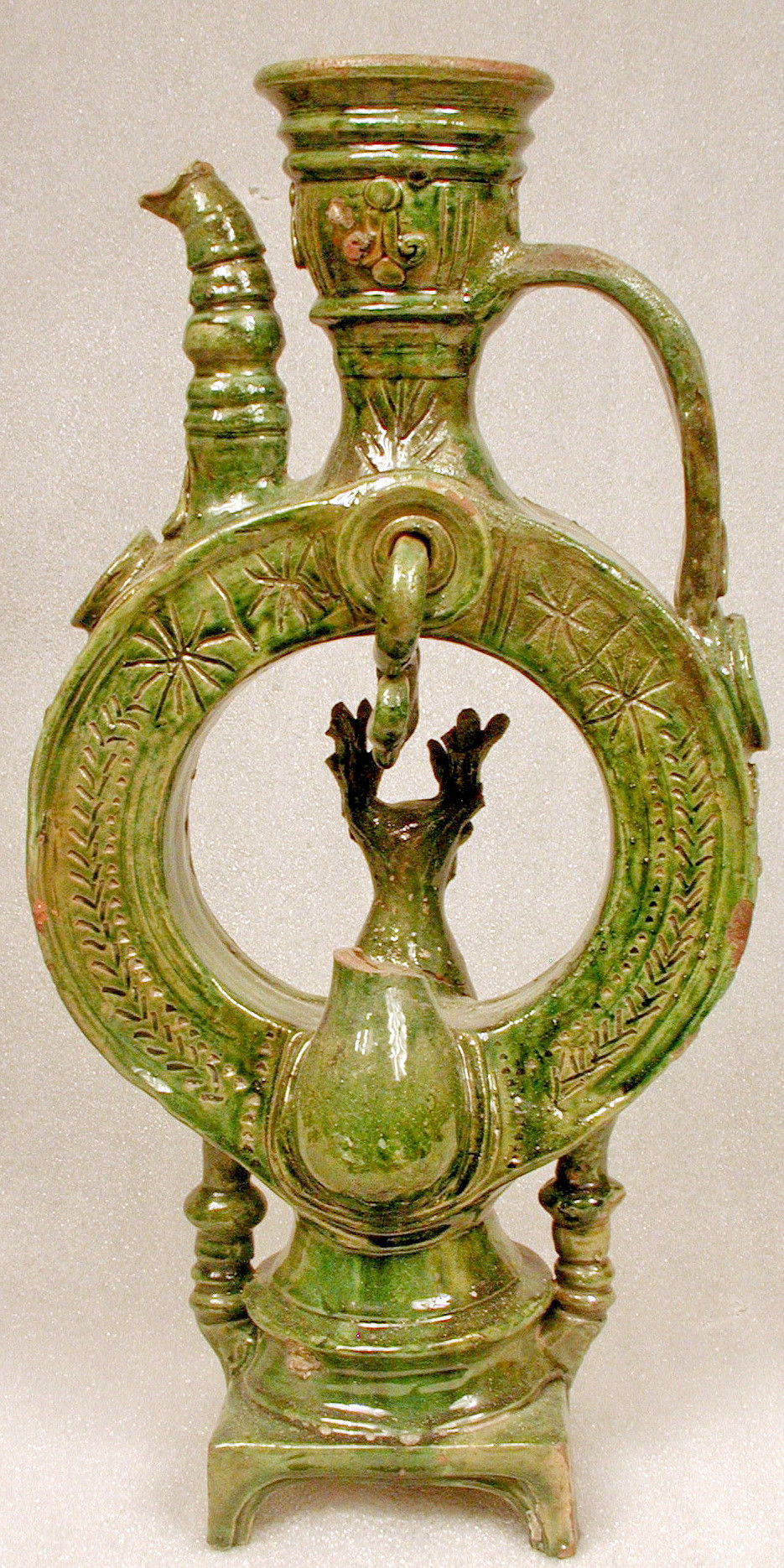 Закладка “Атрибуція” - Наим. предмета, издания: Куманець/Змiн.додаток до назва (лист, ...): Куманець поливаний з рельєфим та гравірованим декором/Змiн. час створення: XVIII - XIX ст.місце створення, школа: КавказНовый материал: керамікаНовый материал: полива зелена (сполуки міді)Изм. техника: гравіруванняИзм. техника: накладний рельєфИзм. техника: полива