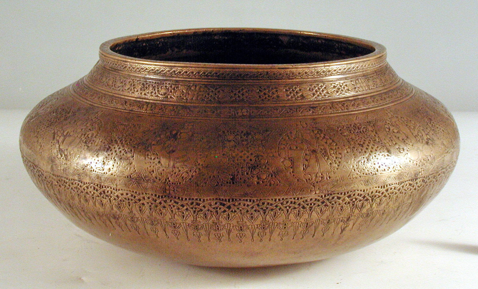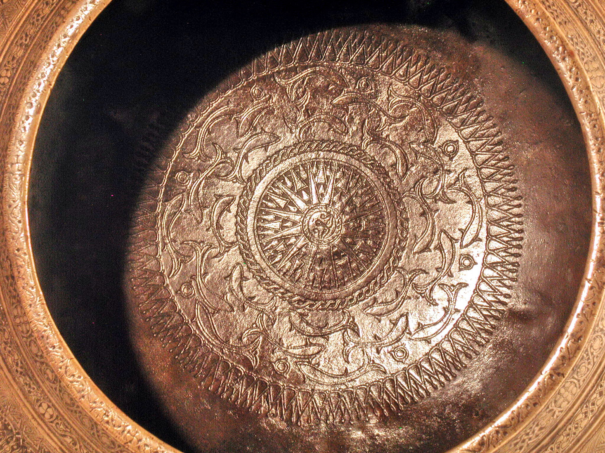 На опуклому боці дна срібляста пляма. Гравіювання подекуди стерте.,