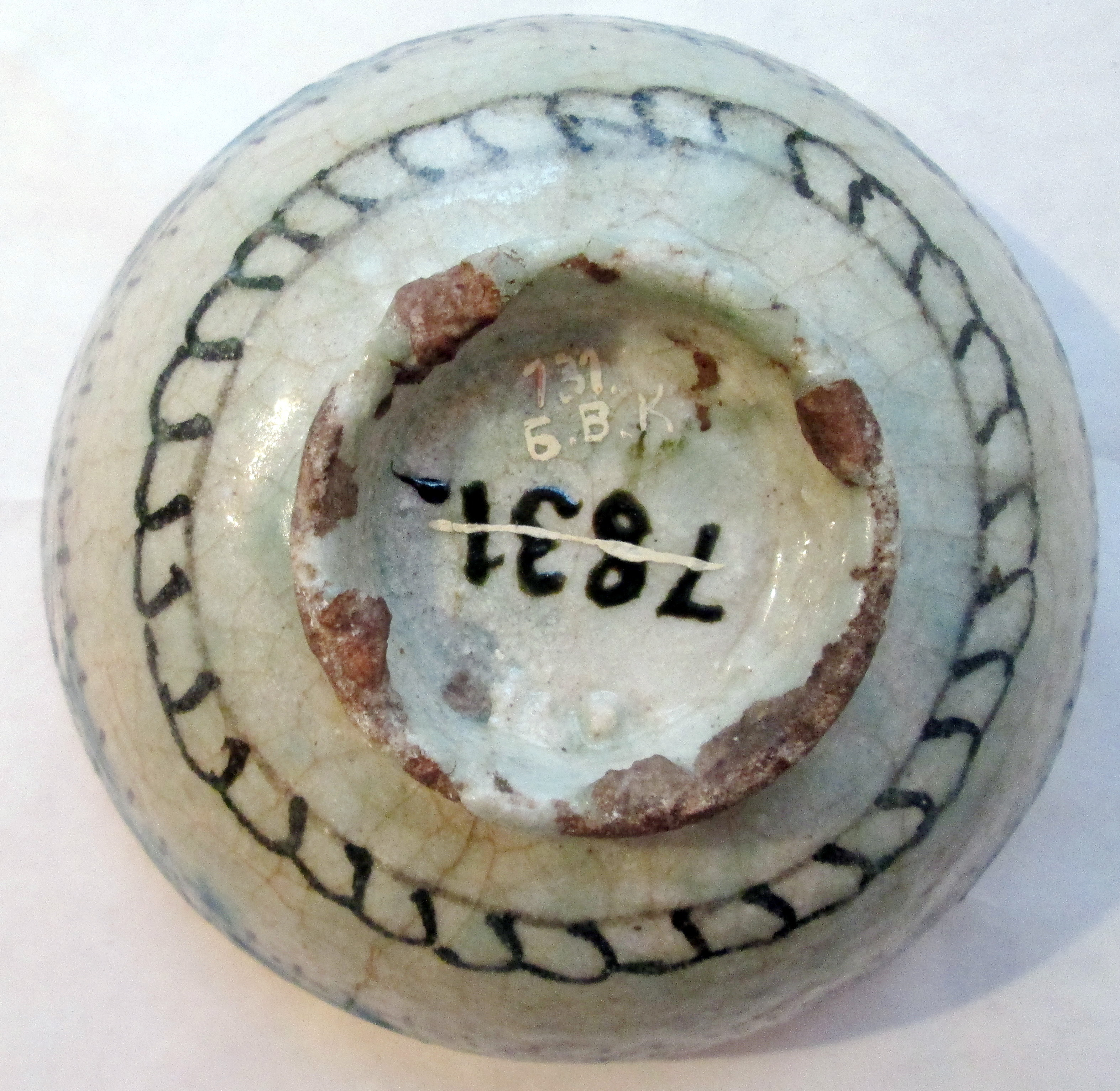 Шматок краю відбитий. Вертикальна тріщина.,