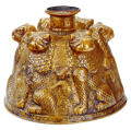 The production of a piece such as this, hammered from a single sheet of metal (?), is a feat of technical prowess almost without equal. The various decorative elements acknowledge the piece's primary function by developing the theme of light. The main decorative theme is that of light: in Islamic astrology, the lion is associated with the sun, which is also recalled in the form of the roundels.