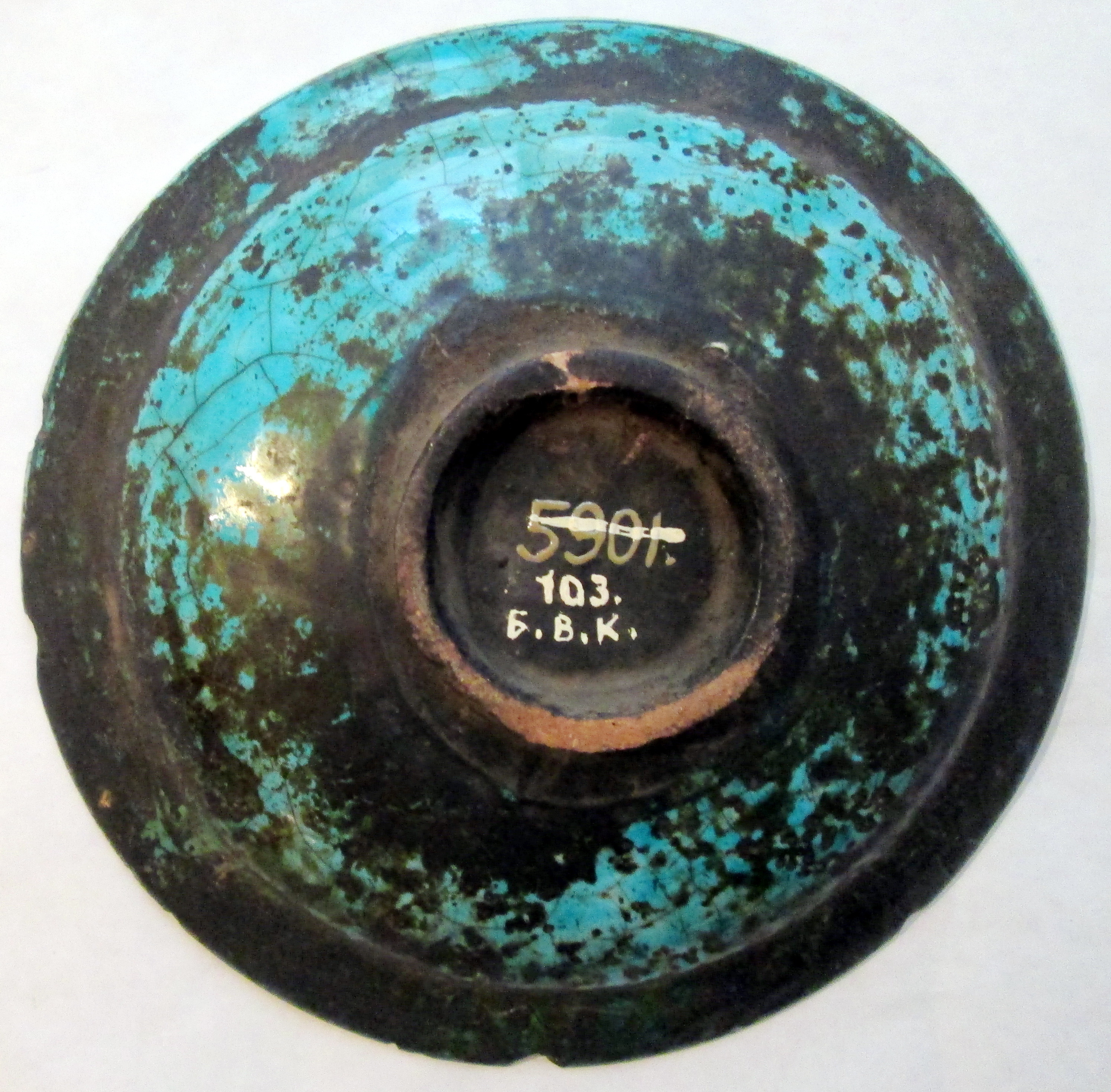 Краї надщерблені. Шматок борту відбитий та приклеєний.,