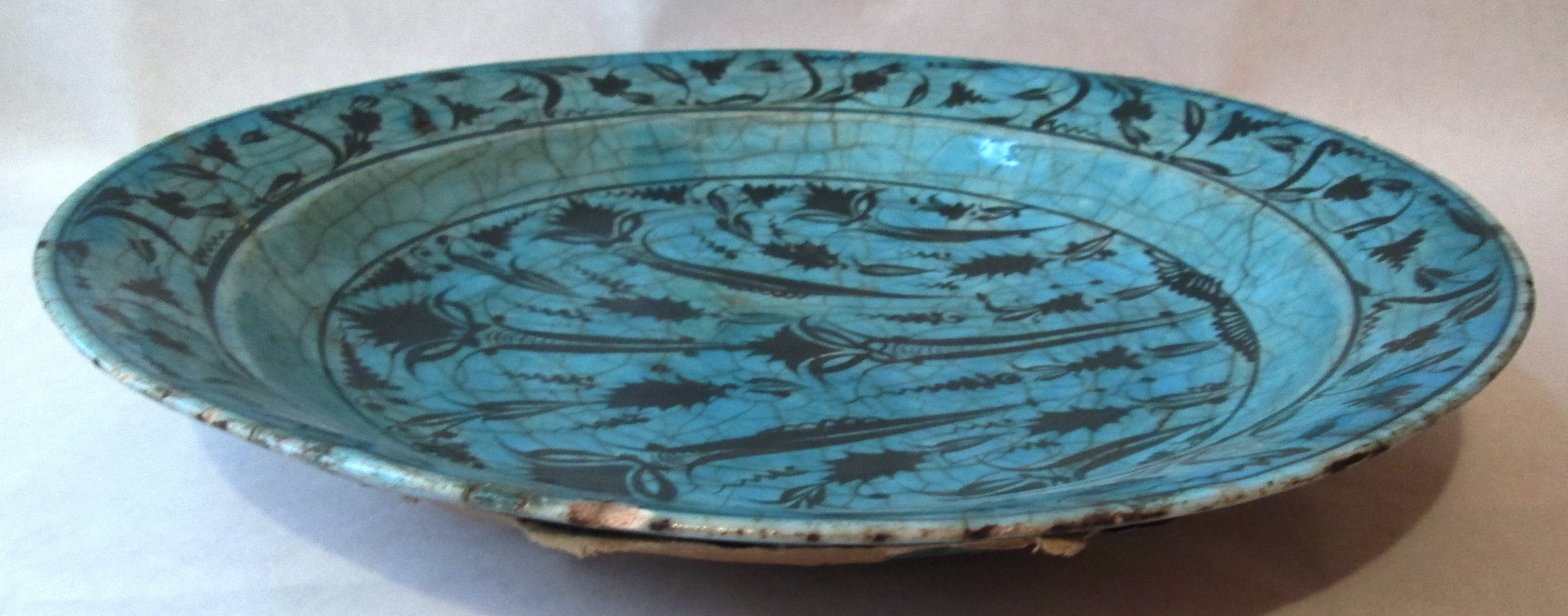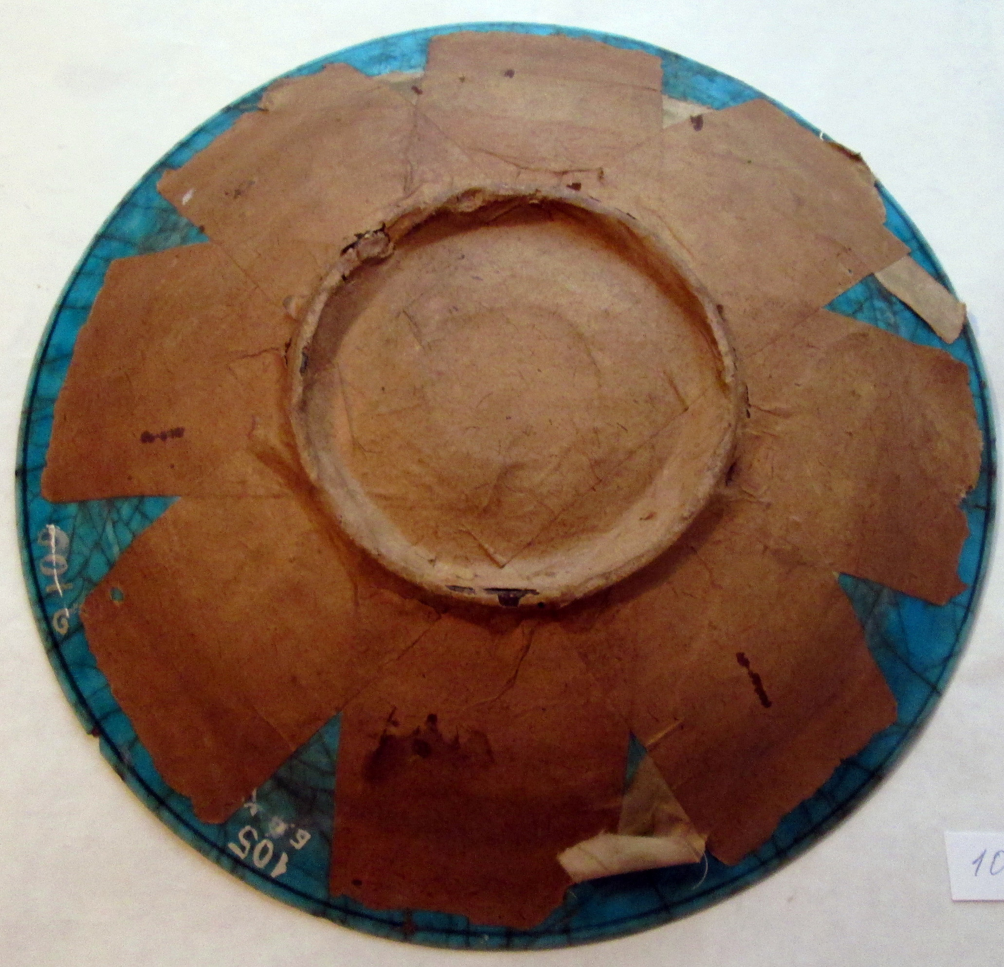 Блюдо склеєно з кількох шматків. Зворотній бік обклеєний папером.,