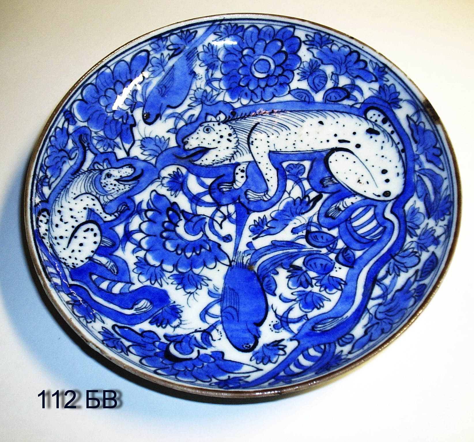 В керамике с синей росписью иранских центров 17 ст., наряду с китайским направлением в декоровке, существовали и местные традиции в рисунке и композиции. Отдельные иранские посудины кобальтовой группы воспроизводят старинные иранские сюжеты из круга феодальной культуры - "охотничьи", "садовые" сцены.