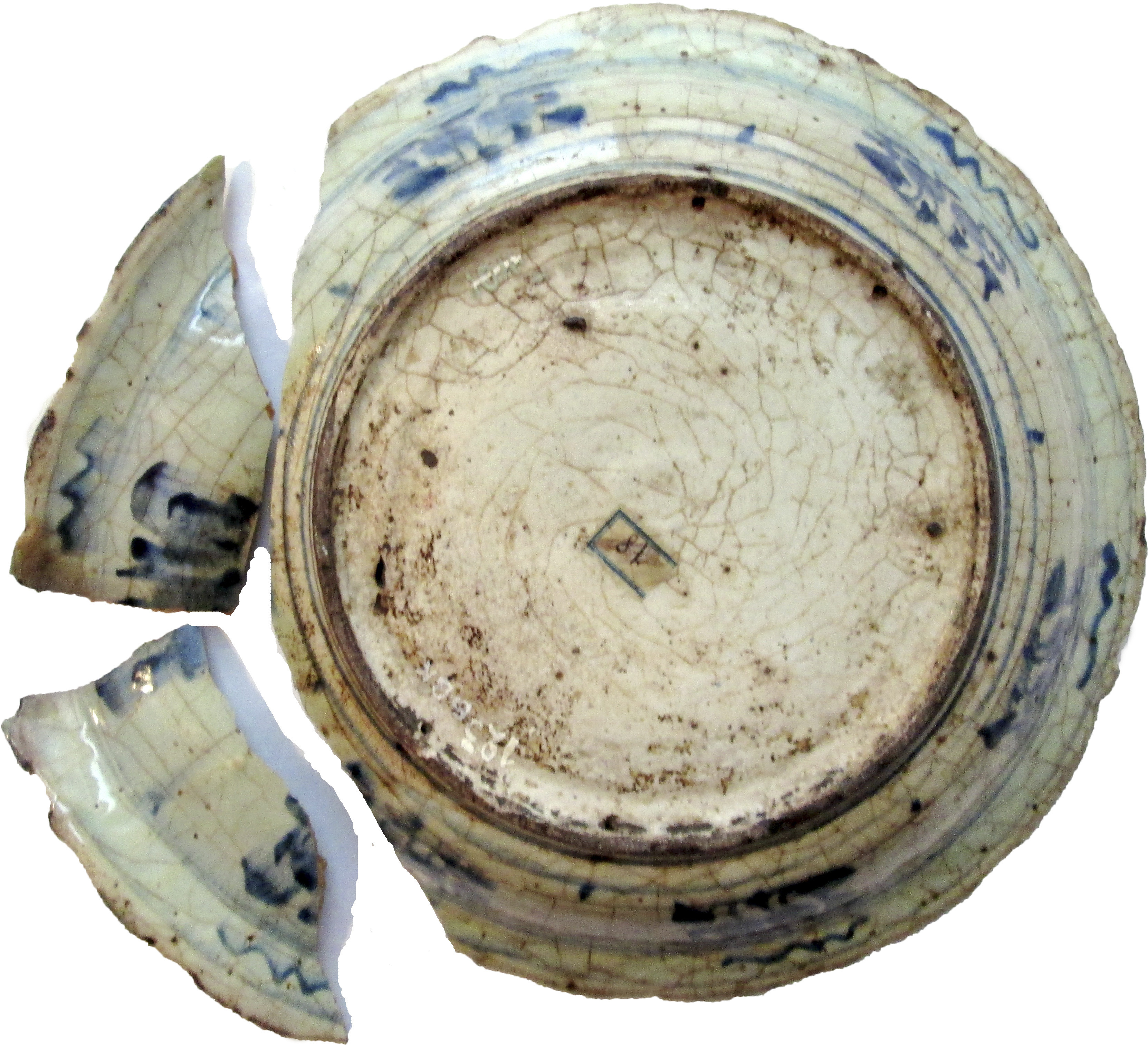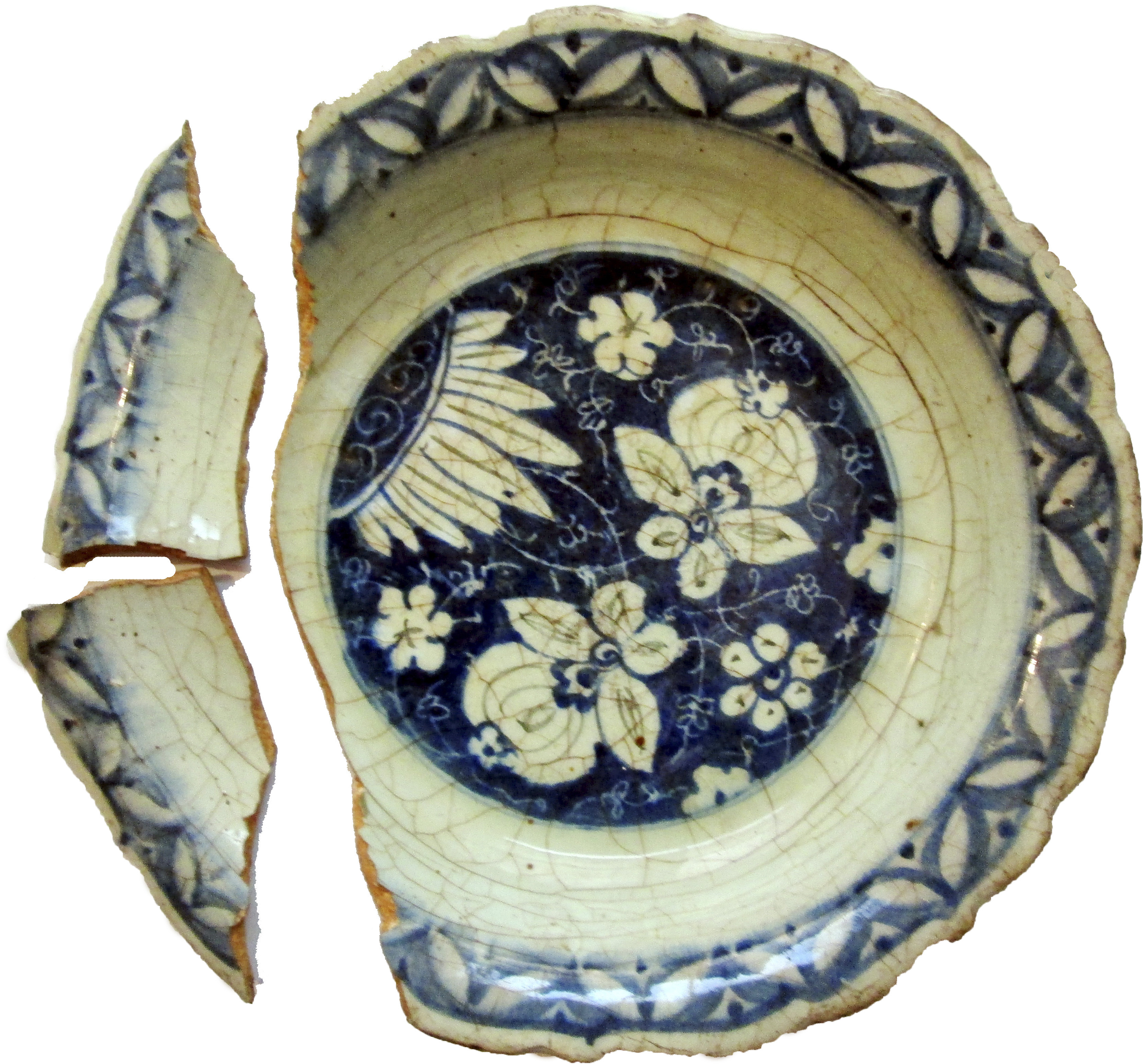 Зворотній бік заклеєний папером. Край надщерблений. Від борту – вертикальна тріщина.,