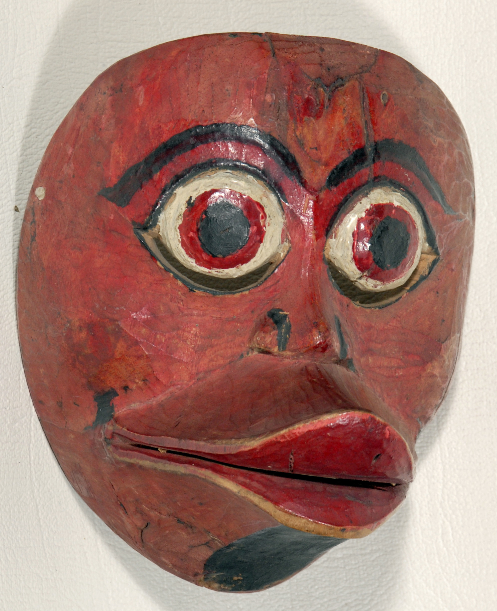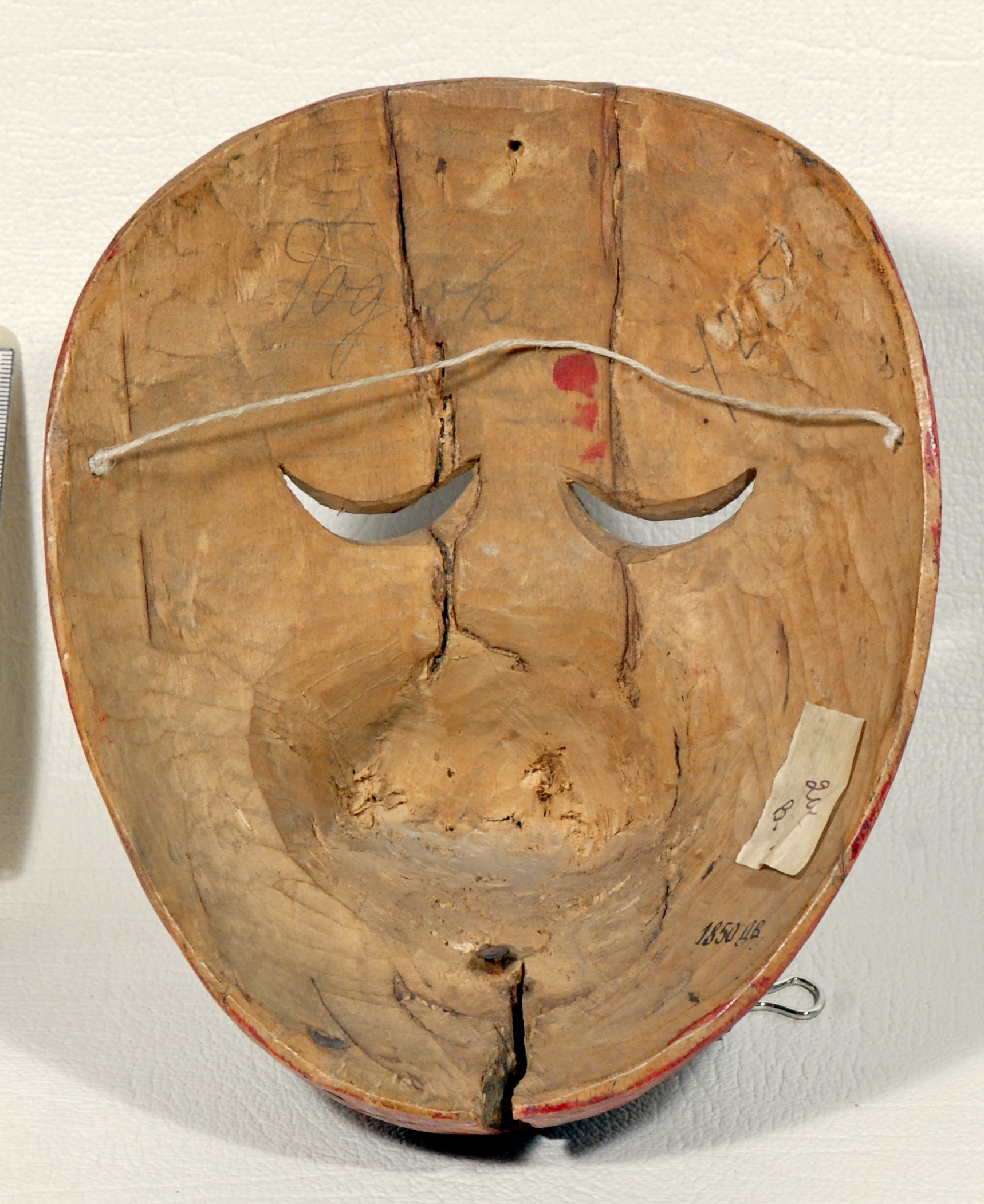 В нижній частині маски – наскріз-на тріщина і дрібні вибоїни. Вгорі справа – вертикальна тріщина, що проходить крізь брову та око.,