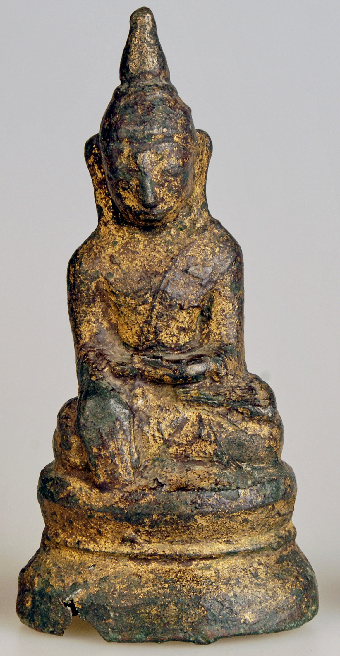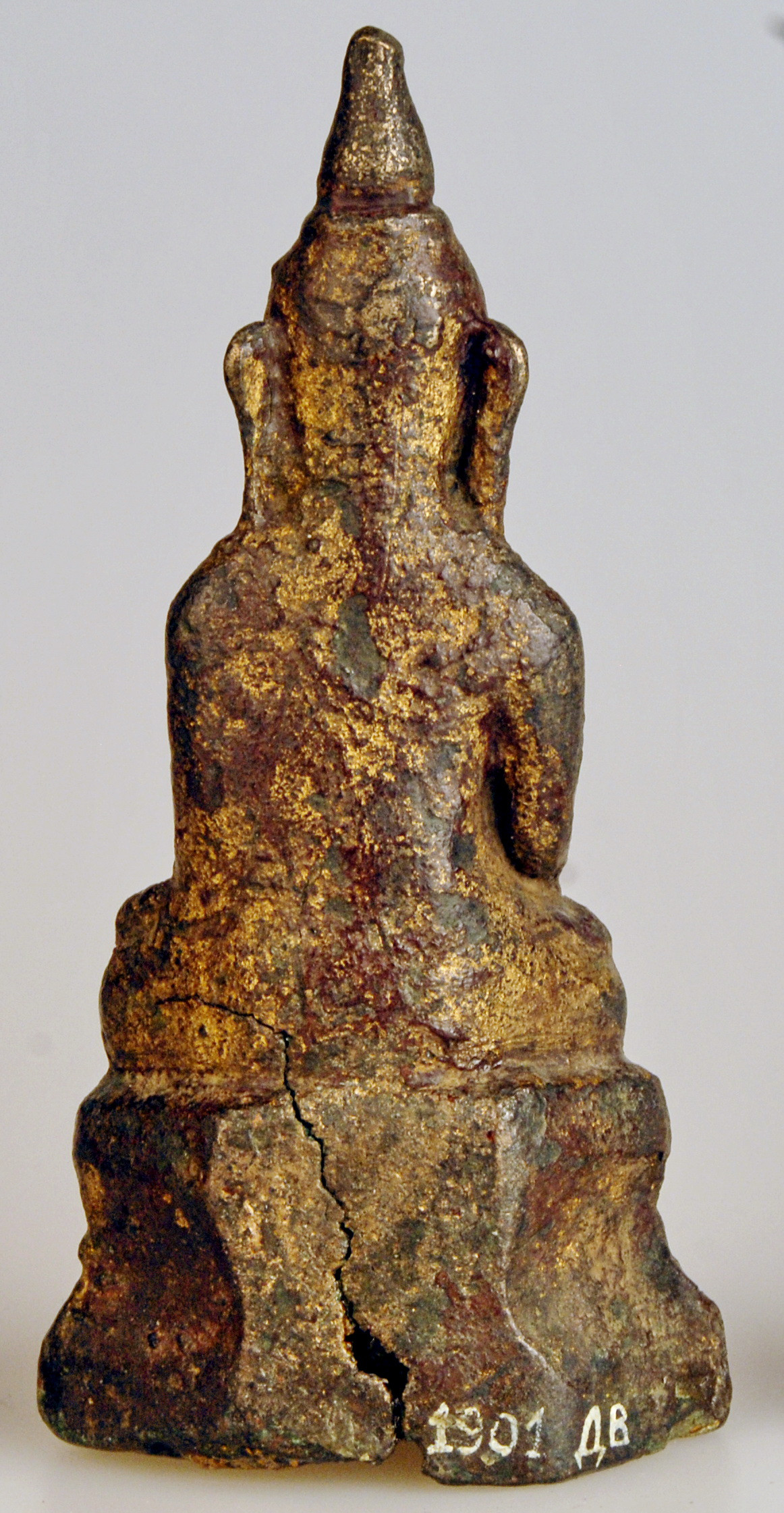 Значна потертість позолоти велика тріщина, втрати біля основи.,