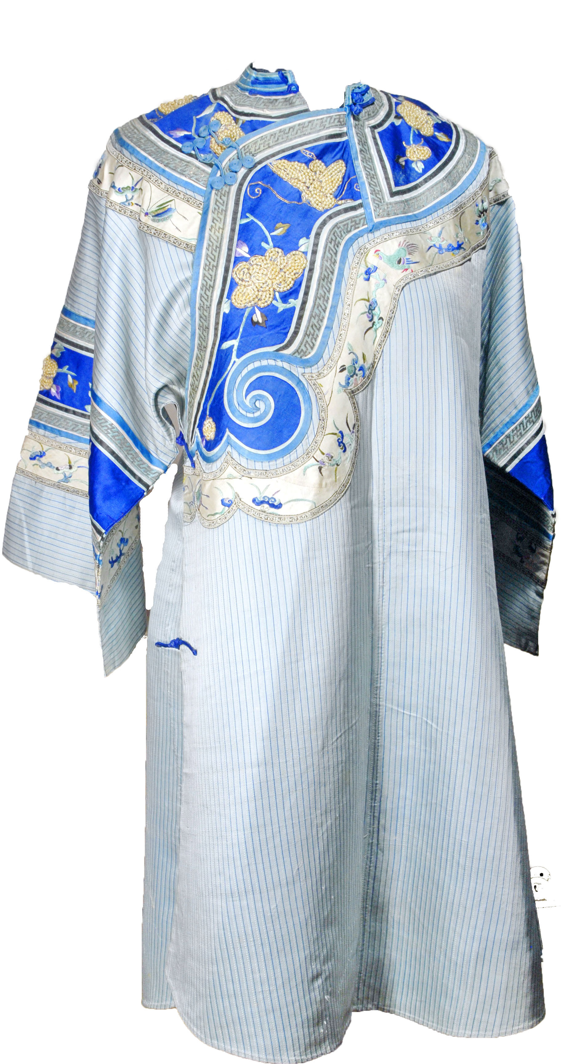 Забруднена в місцях згинів та коміра з вивороту. Прорив на спині, січення шовку, невеликі плями, втрачено перлини.,