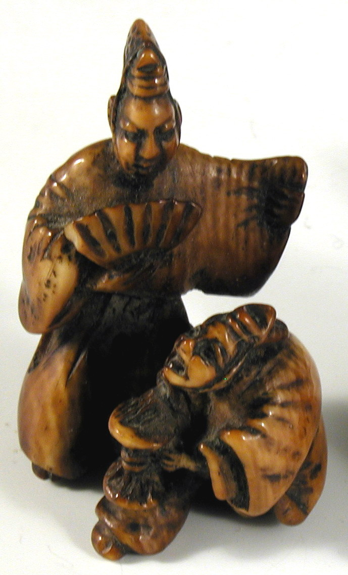 Нецке у вигляді двох манзаїв (мандрівних акторів).