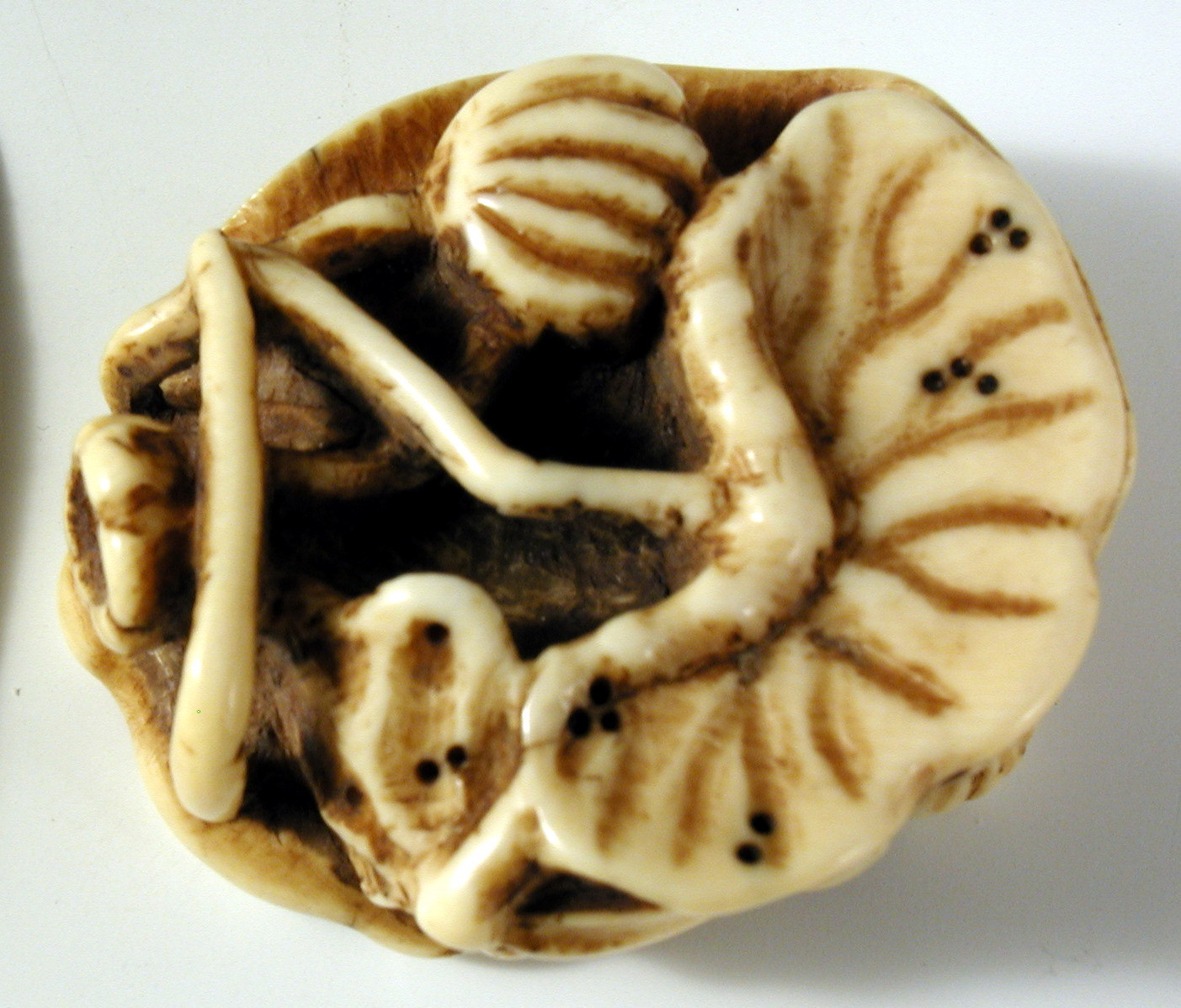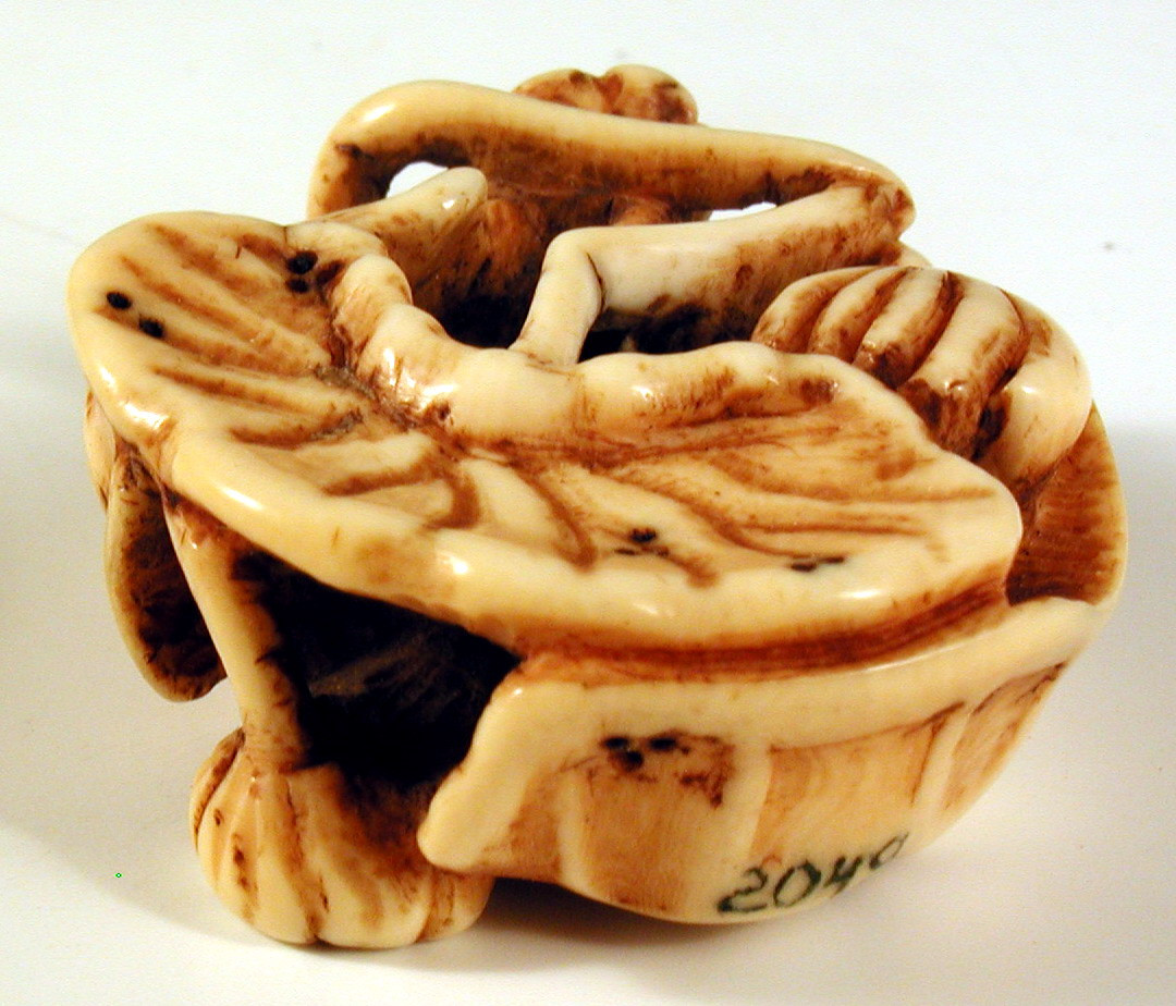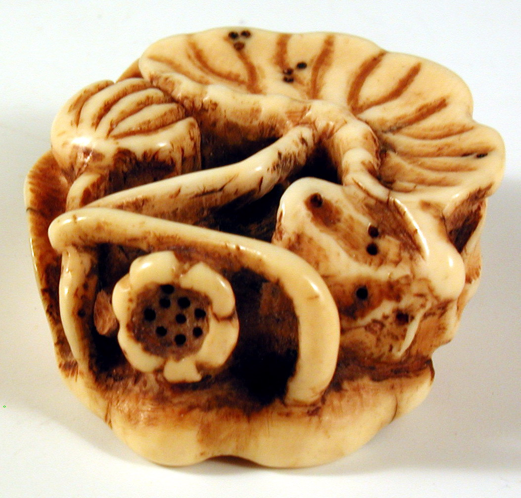 Закладка “Атрибуція” - Наим. предмета, издания: Нецке "Зів’ялий лотос"/Змiн. час створення: Друга половина 19 ст.Автор, автор съемки: Невідомий майстерИзм. техника: різьблення
