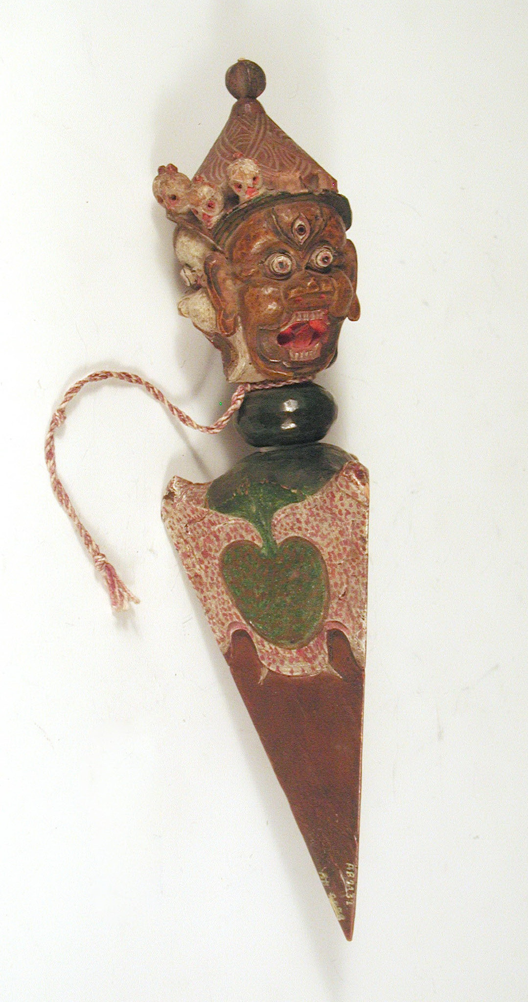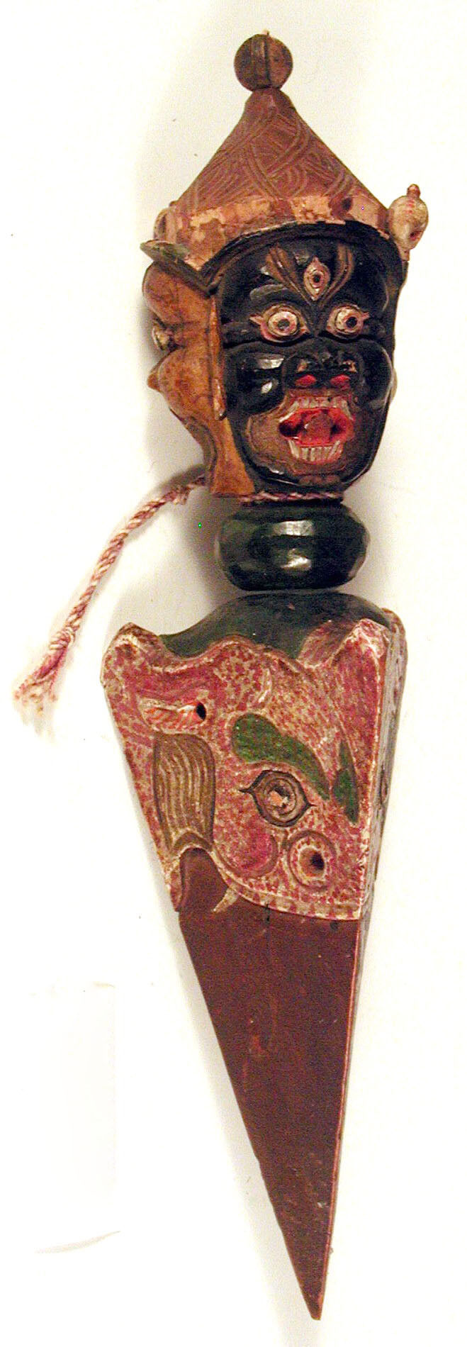 Історія Атрибуціi: Огнева О.Д., 2003 р.:Кіла (скр. kila, тиб. Phur-ba, phur-bu) – ритуальний ніж.Тибет чи Монголія, ХVІІІ – ХІХ ст.;дерево, розфарбування