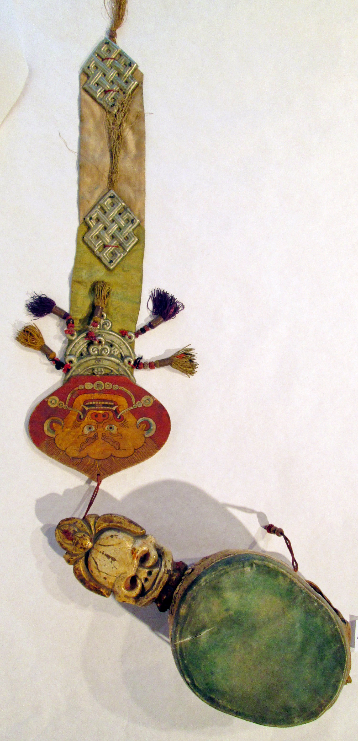 Кількість: 1/ншi написи, штампи, печатки, етикетки, наклейки: На шовковій стрічці напис російською мовою в дореволюційній орфографії (чорнилами від руки): “Тибетъ. 19 век/ молитв. барабанъ/ ламы отшельника/ собр. доктора Бадмаева”.