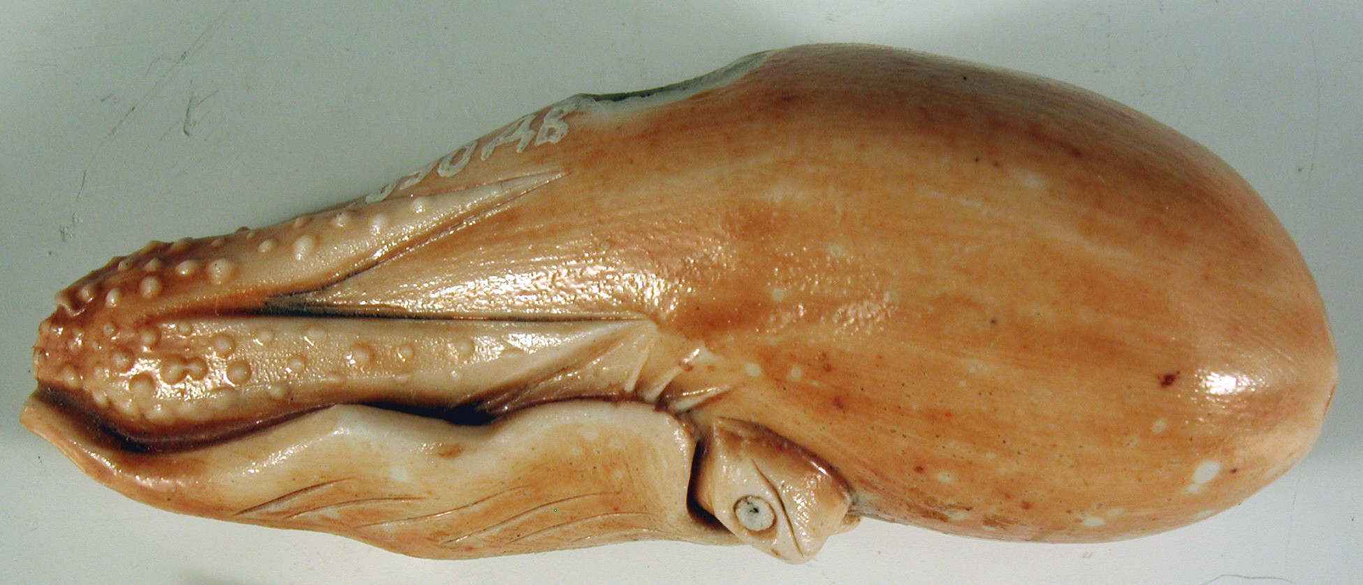 Закладка “Атрибуція” - Наим. предмета, издания: Нецке "Жабеня на гарбузі-горлянці"Автор, автор съемки: Невідомий майстерНовый материал: керамікаИзм. техника: полива