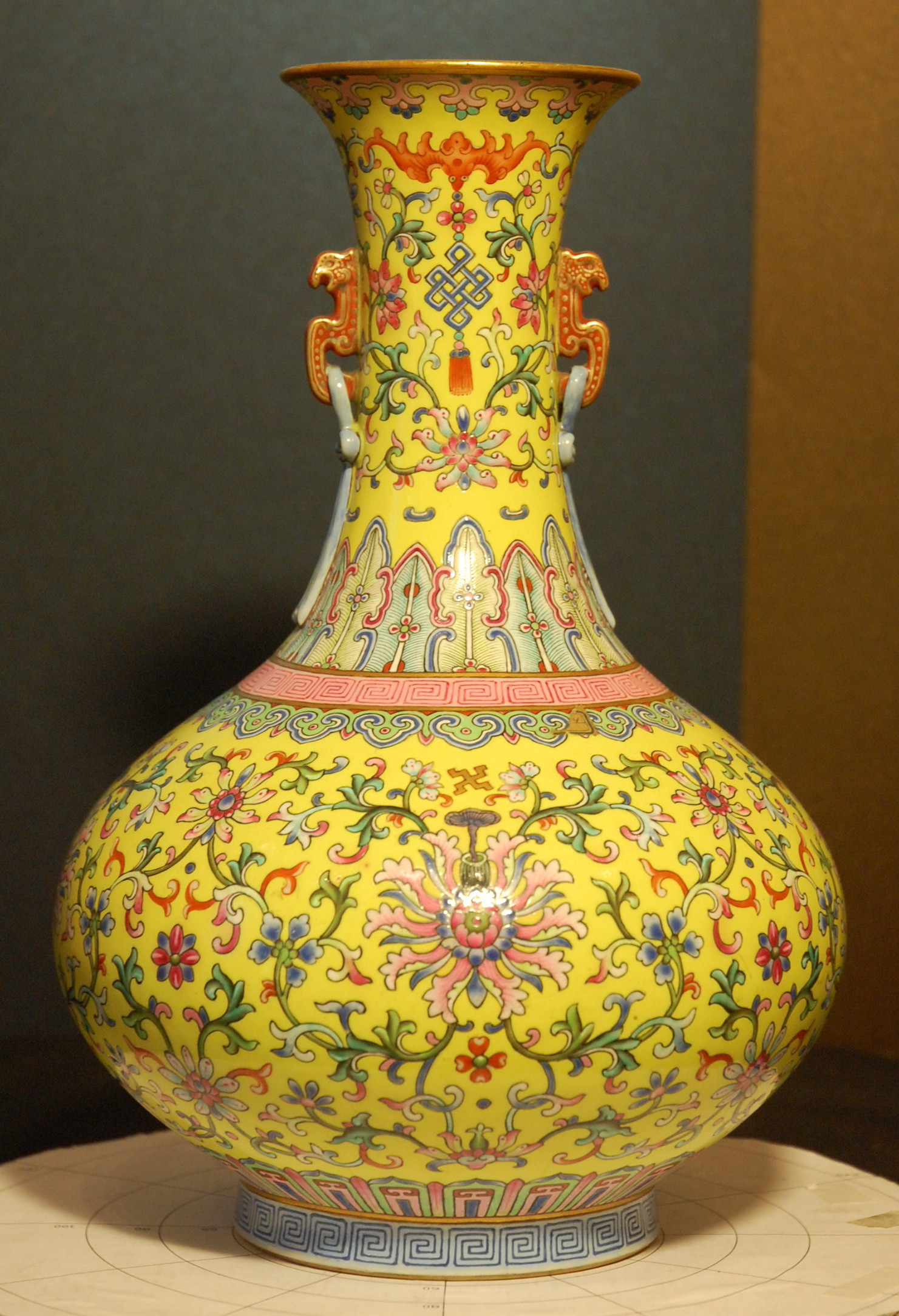 Закладка “Атрибуція” - Наим. предмета, издания: Ваза із зображенням символів доброзичливості/Змiн. час створення: Період Цяньлун (1736-1795)місце створення, школа: КитайИзм. техника: поліхромний розпис