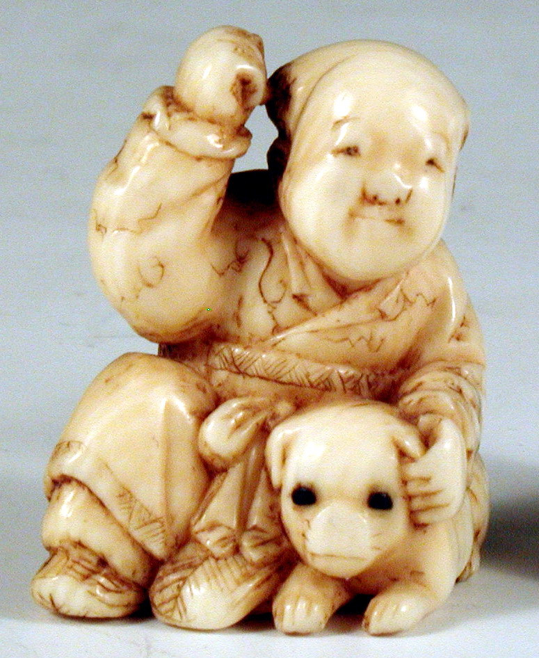 Закладка “Атрибуція” - Наим. предмета, издания: Нецке "Хлопчик з собакою"Автор, автор съемки: Невідомий майстермісце створення, школа: Японія