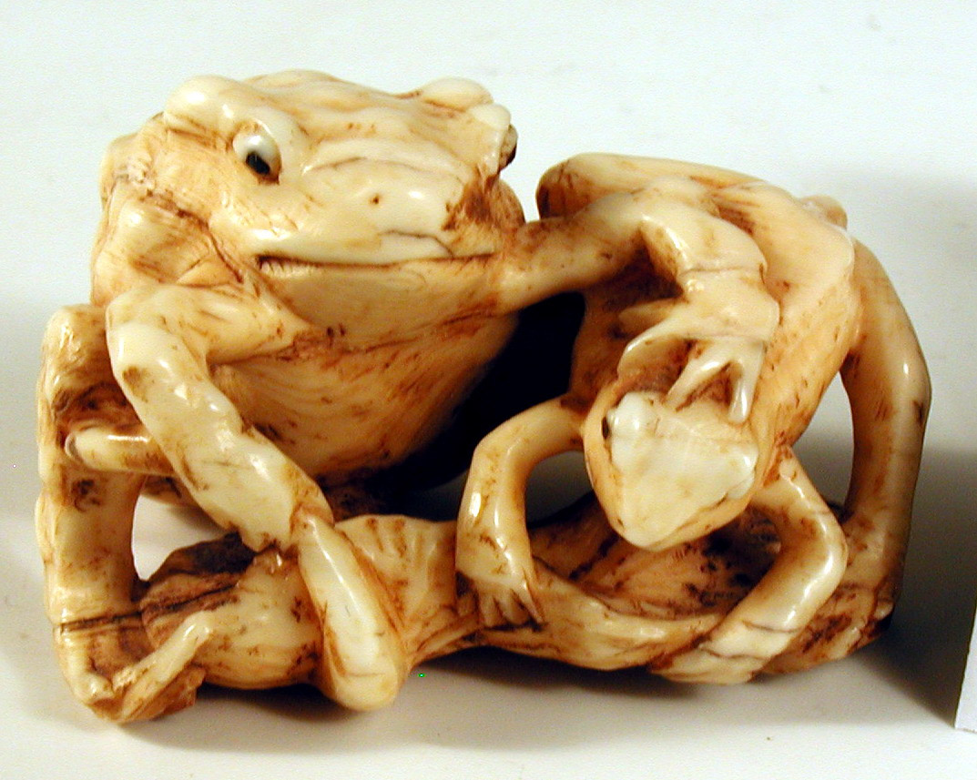 Нецке – жаба з дитинчам на листку.