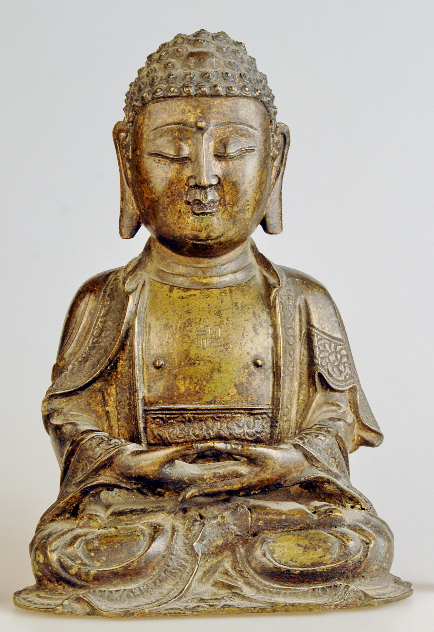 Майже повна втрата позолоти і розфарбування, загальне забруднення, потертість, дрібні подряпини.,
