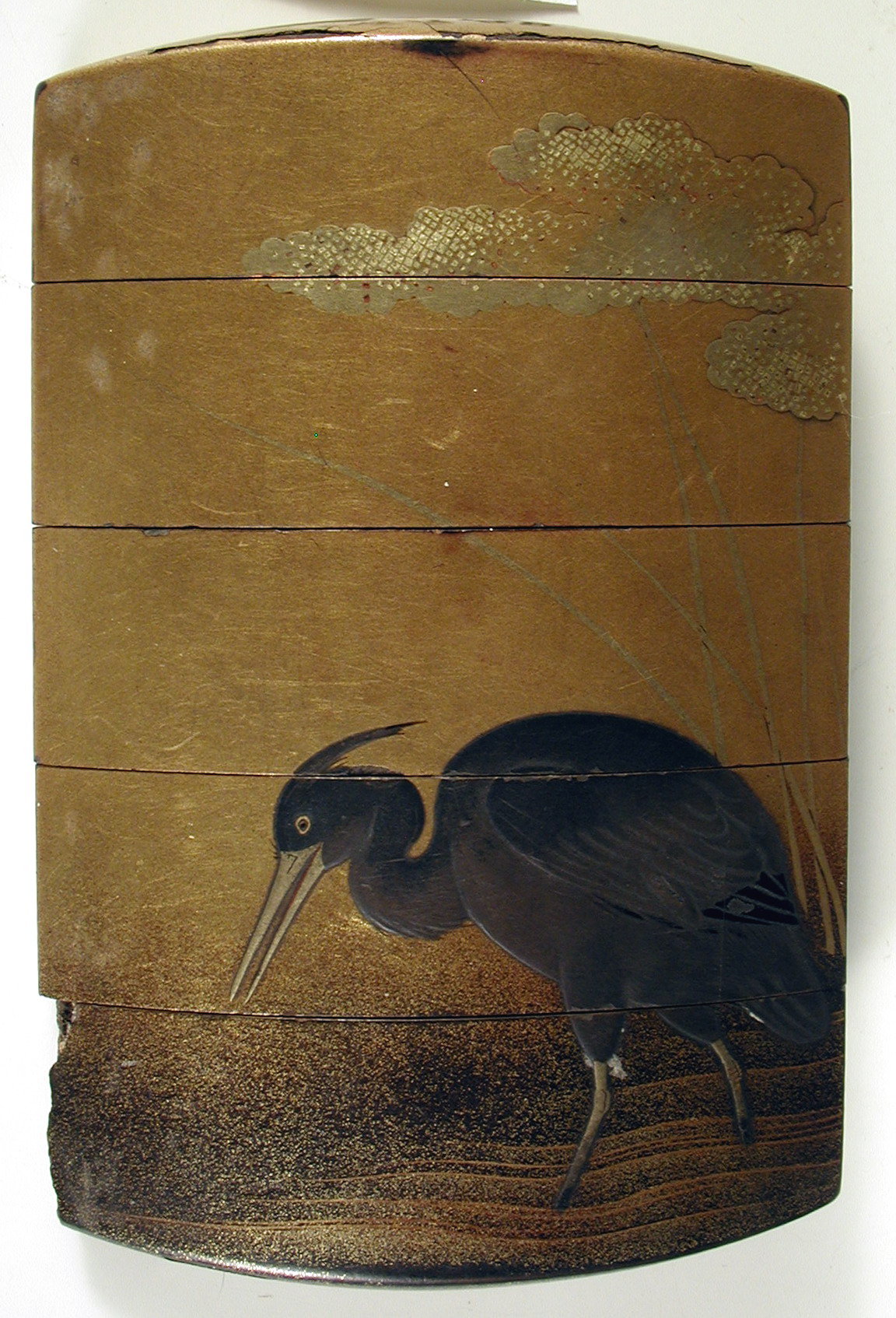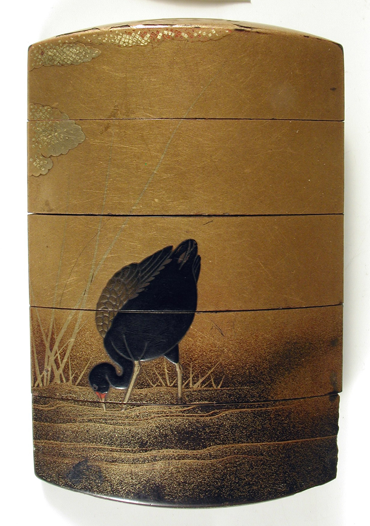 Закладка “Атрибуція” - Наим. предмета, издания: Інро з чаплеюНовый материал: лак