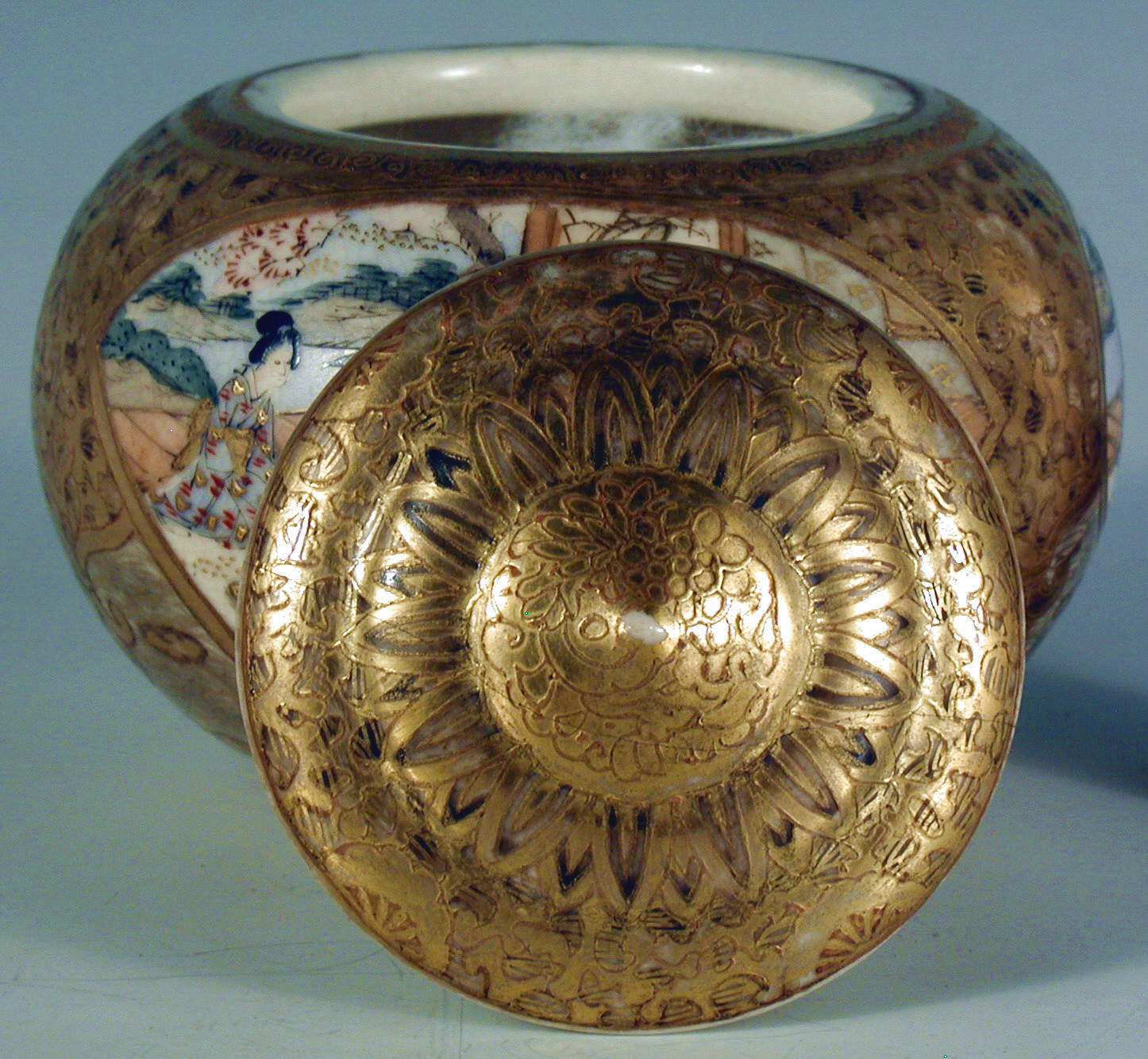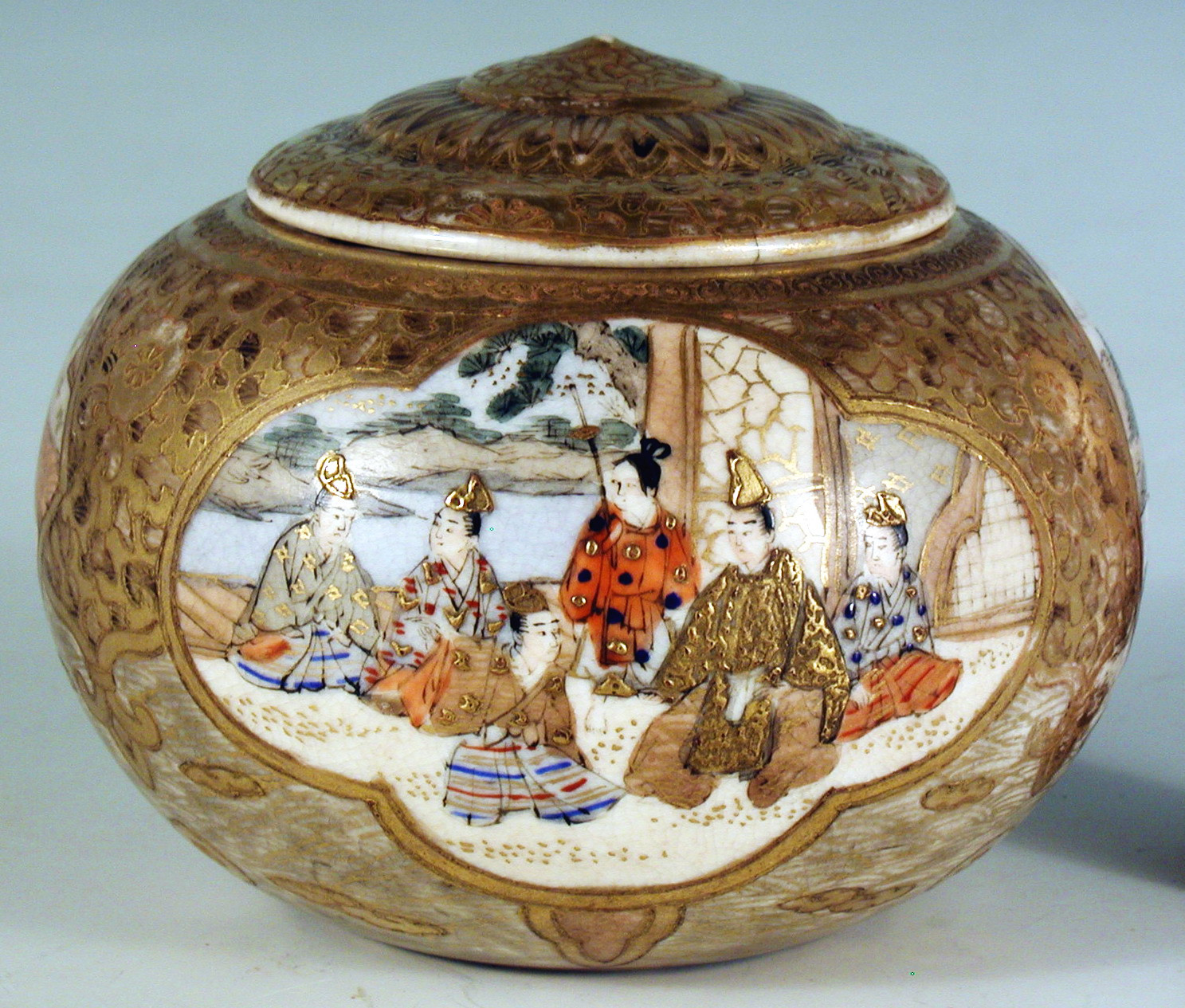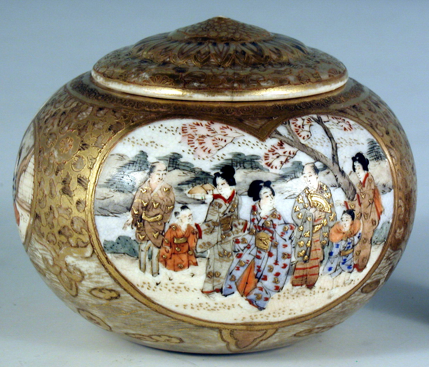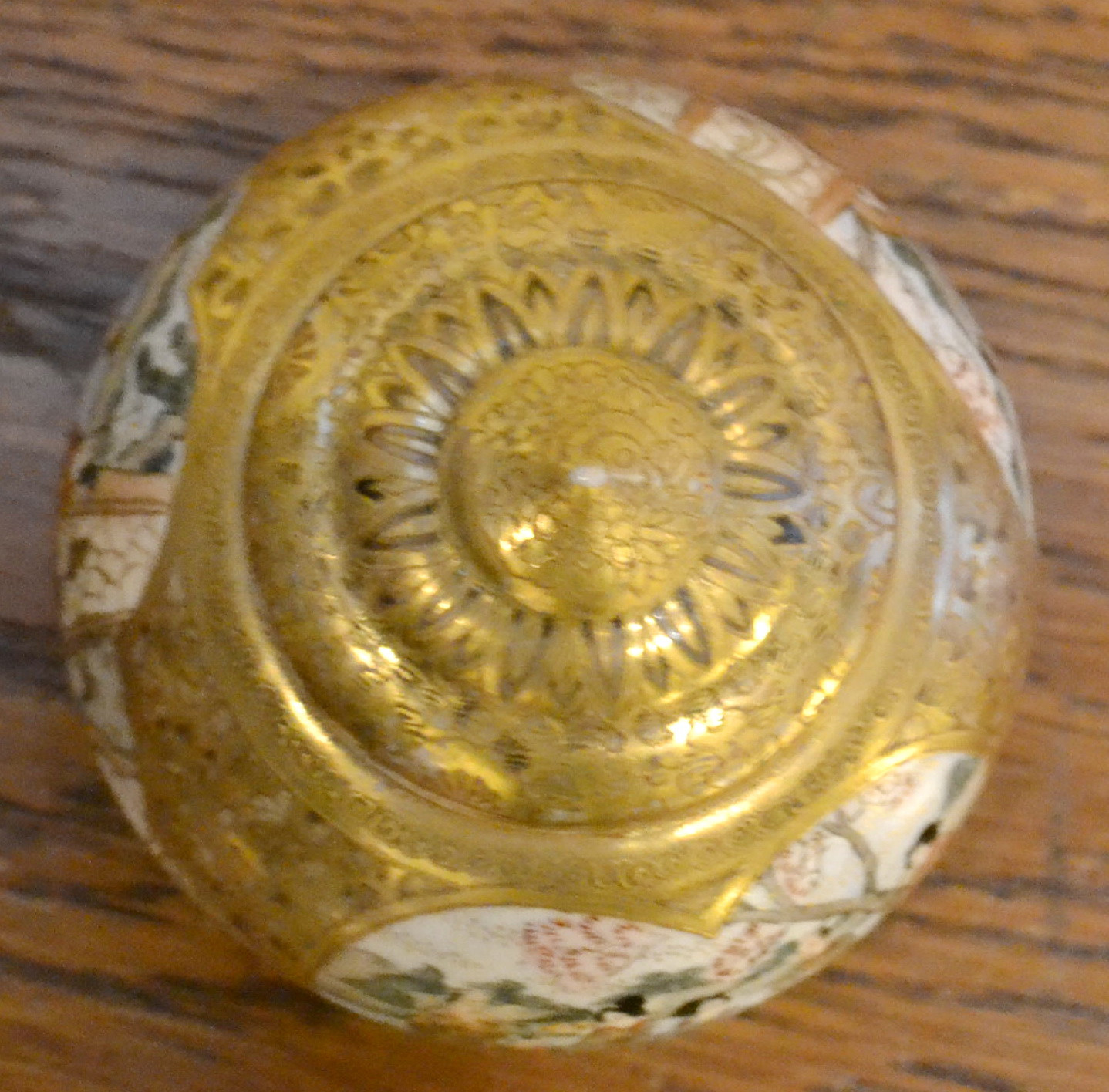 Потертості позолоти, на кришці 2 тріщини, дрібносітчастий кракелюр.,