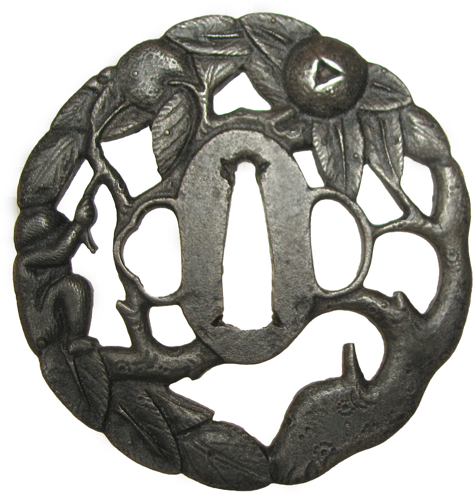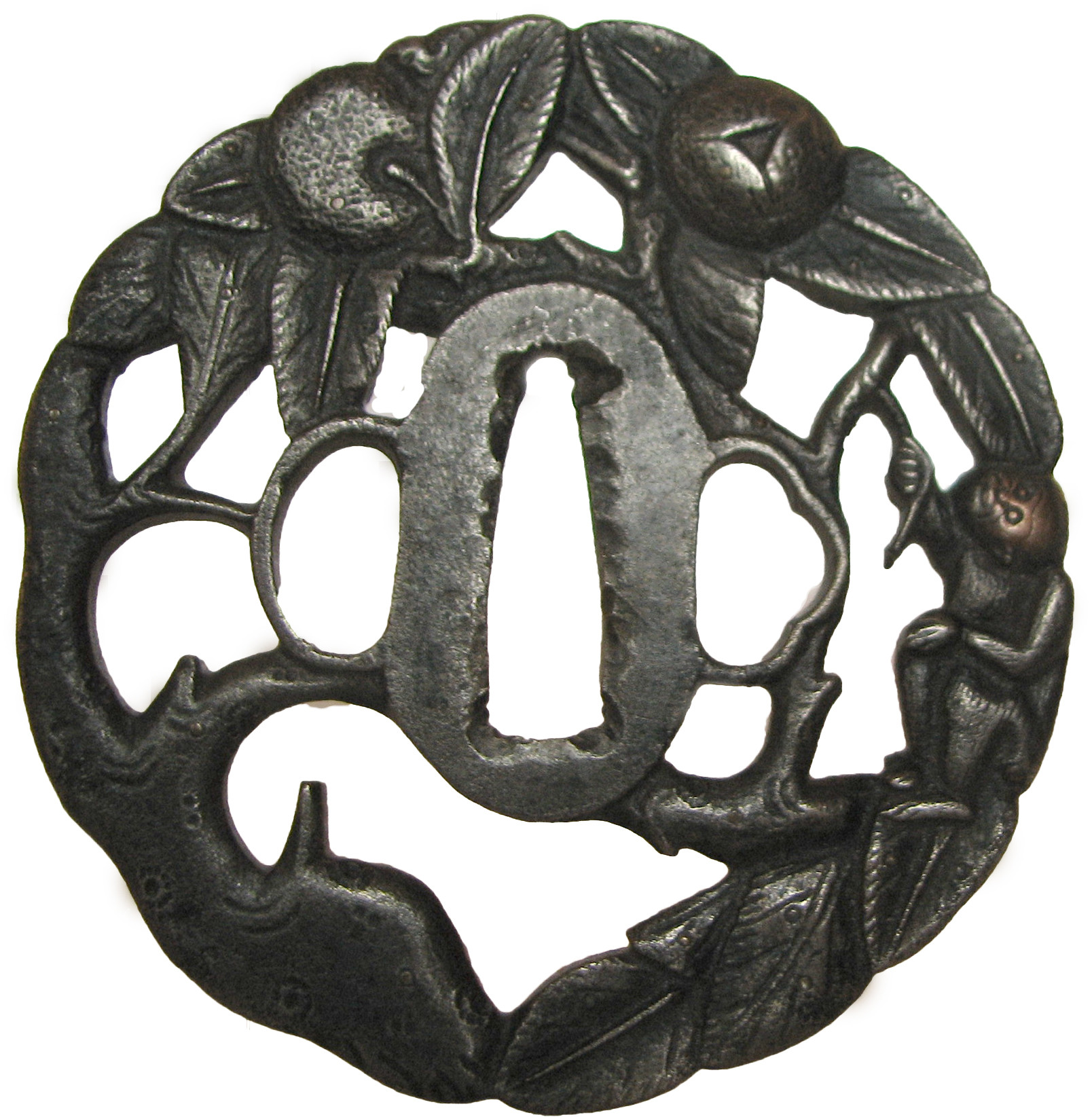 Закладка “Атрибуція” - Наим. предмета, издания: Цуба із зображенням мавпи, що тягнеться за плодом/Змiн. час створення: 17 ст.Автор, автор съемки: Невідомий майстерИзм. техника: куванняИзм. техника: різьбленняИзм. техника: гравіруванняНовый материал: залізоНовый материал: бронзамісце створення, школа: м. Кіото