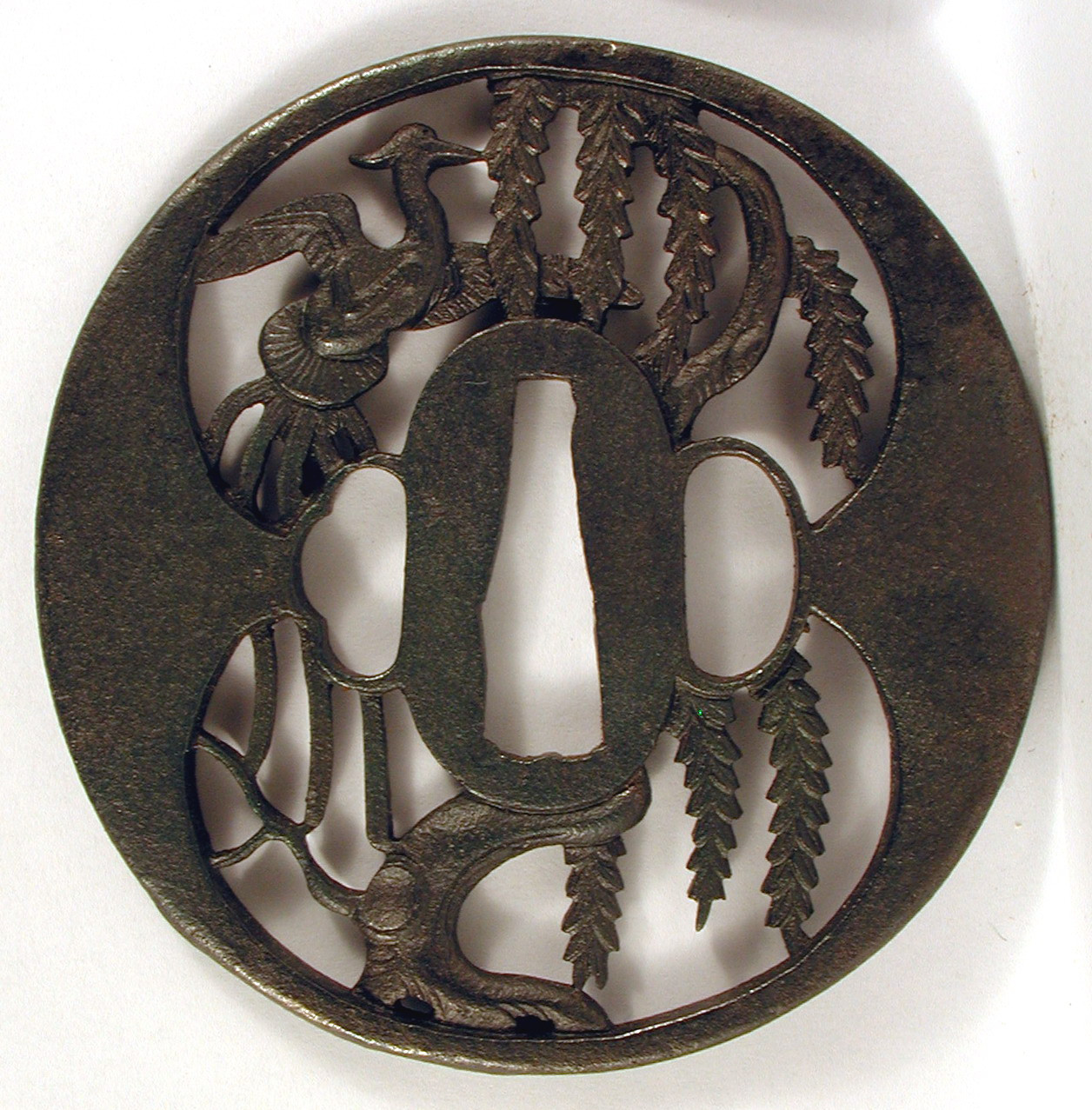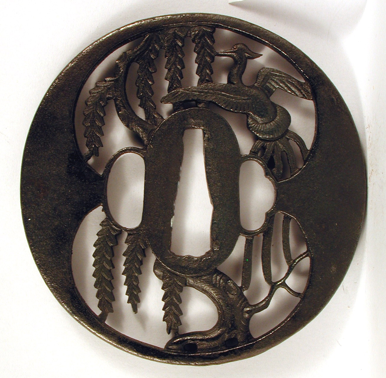 Закладка “Атрибуція” - Наим. предмета, издания: Цуба з зображенням фенікса/Змiн. розміри: 8,3 х 8,5 см/Змiн. час створення: Друга половина 18 ст.Автор, автор съемки: Невідомий майстерИзм. техника: куванняИзм. техника: різьбленняИзм. техника: гравіруваннямісце створення, школа: провінція Бідзен
