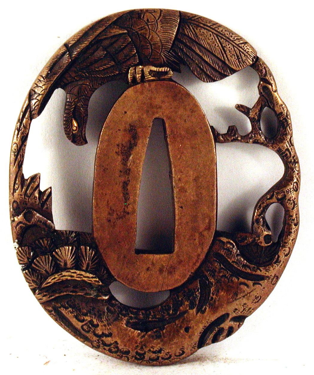 Закладка “Атрибуція” - Наим. предмета, издания: Цуба із зображенням соколиного полювання/Змiн. розміри: 4,9 х 6,0см/Змiн. час створення: Кінець 18 - початок 19 ст.Автор, автор съемки: ТосімасаИзм. техника: литтяИзм. техника: різьбленняИзм. техника: карбуванняИзм. техника: гравіруваннямісце створення, школа: Японія