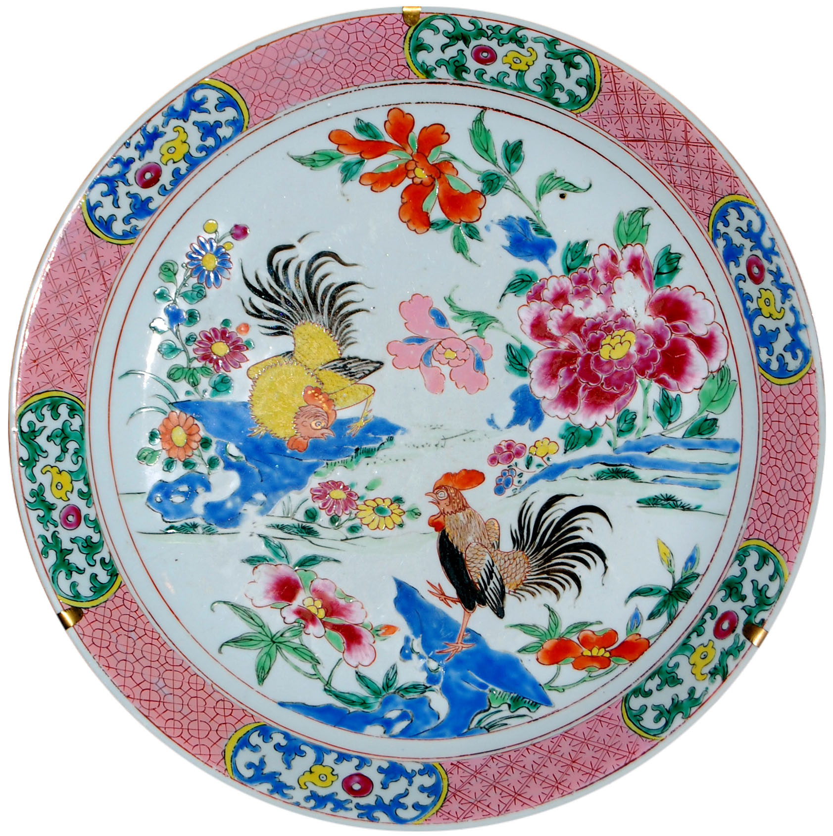 Закладка “Атрибуція” - Наим. предмета, издания: Таріль із зображенням бою півнів/Змiн. час створення: Період Цяньлона (1736-1795)Изм. техника: поліхромний розпис
