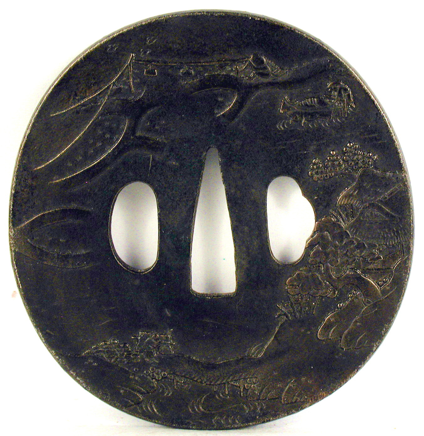 Закладка “Атрибуція” - Наим. предмета, издания: Цуба зі сценою оранки/Змiн. розміри: 8,1 х 8,5 см/Змiн. час створення: XVIII ст.місце створення, школа: стиль ТомохісаИзм. техника: куванняИзм. техника: гравірування