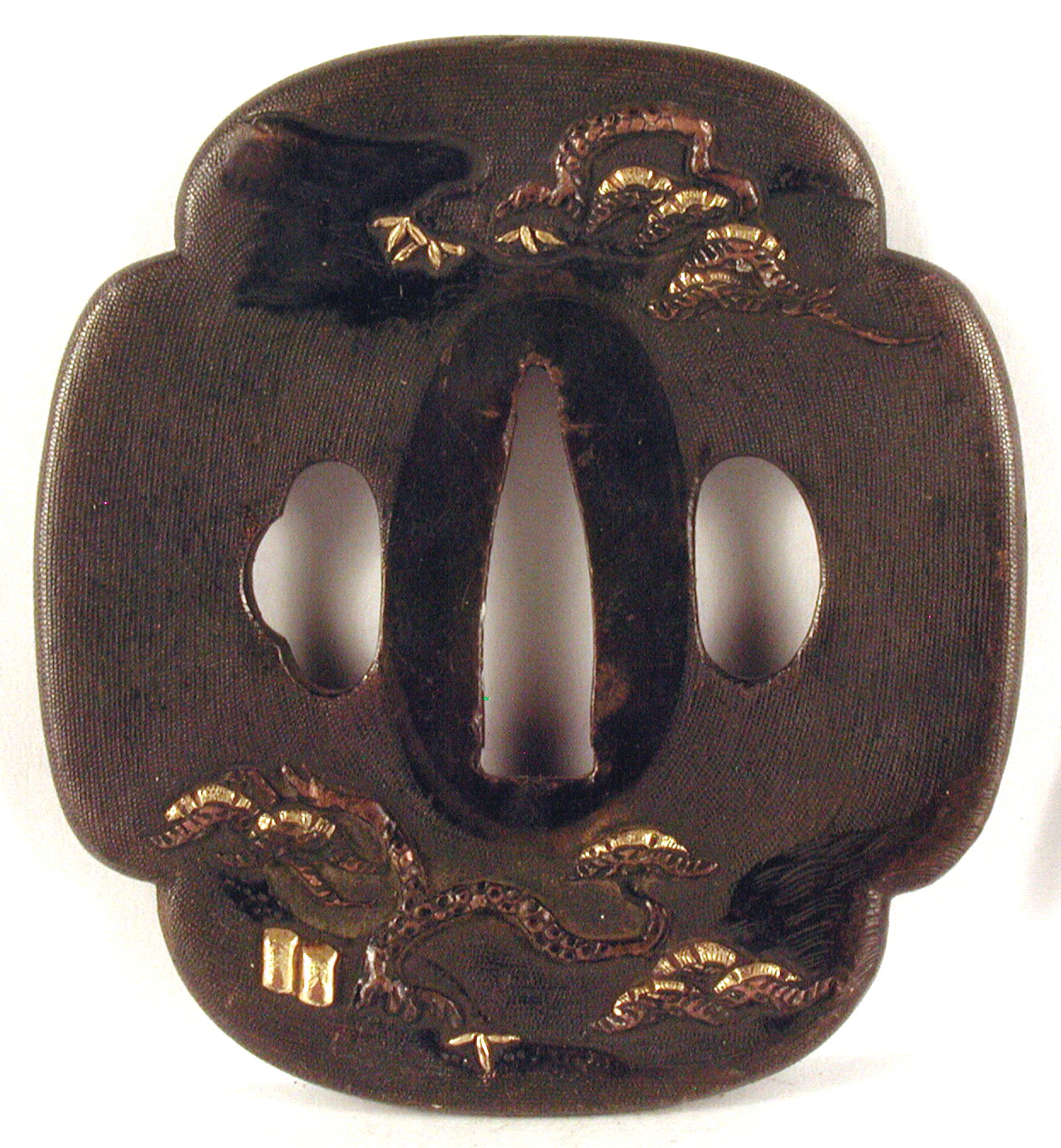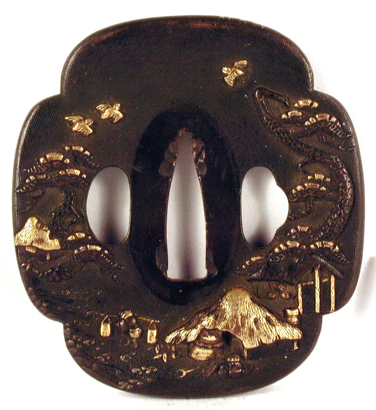 Закладка “Атрибуція” - Наим. предмета, издания: Цуба із зображенням хатин/Змiн. розміри: 6,9 х 7,5 х 7,7 см/Змiн. час створення: XIX ст.Автор, автор съемки: Невідомий майстерНовый материал: бронзаИзм. техника: куванняИзм. техника: гравіруванняИзм. техника: патинуванняИзм. техника: позолота