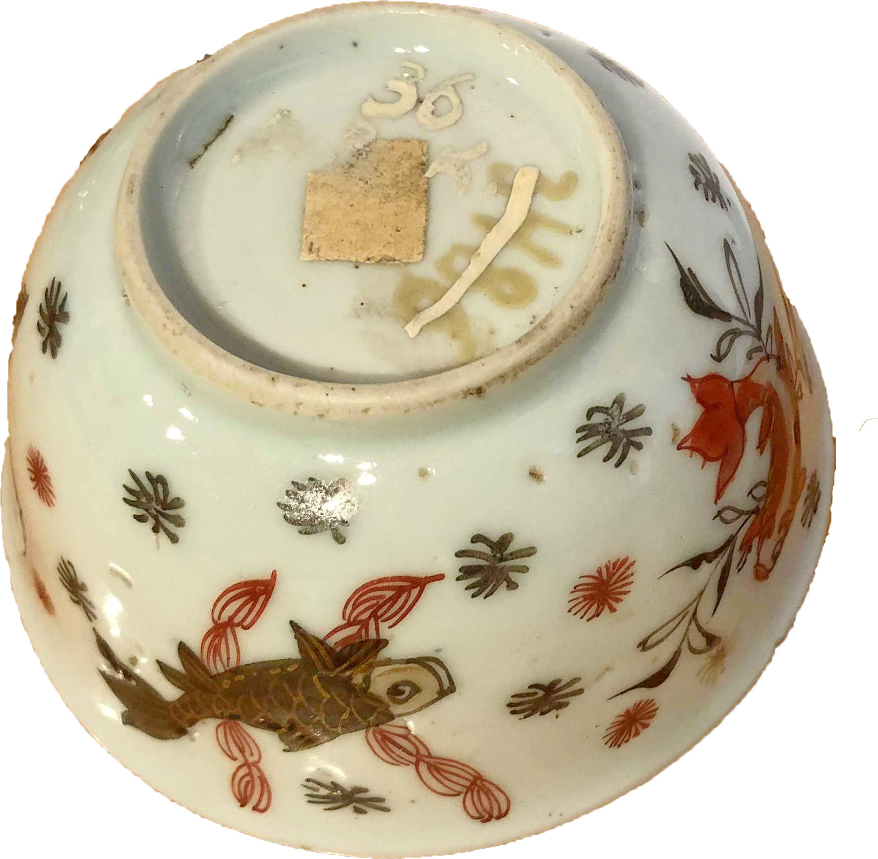 Чашечка напівсферична з відігнутим краєм, із золотими і чорними зірочками.